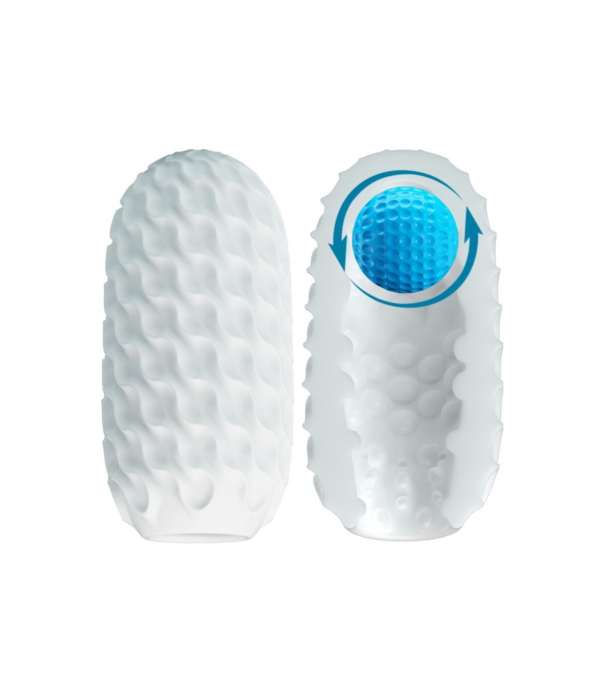 La innovadora funda está lista para acariciarte y masajearte hasta un poderoso clímax. Este lindo masturbador con forma de huevo viene con túneles internos texturizados y una bola mágica.
