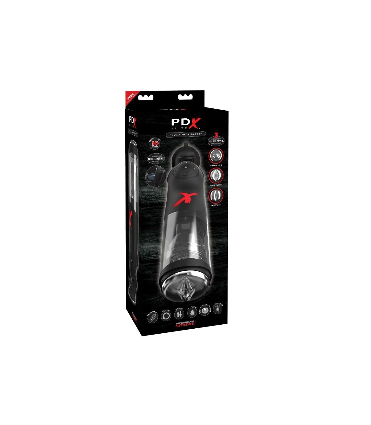 ppEl Mega Bator es un masturbador deluxe ya que es el unico masturbador sin manos que hara por ti todo el todo el trabajo para que vivas la mejor experiencia de masturbacion sin manos que se pueda tener El innovador Mega Bator combina rotacion y batidas que puedes complementar de 10 formas distintas completamente personalizables Disfruta de lo mejor de ambos mundos a la vez con su intensa rotacion combinada con potentes batidas y lo mejor de todo es que es sin manos pulliMasturbador luxury multifuncional liliFunciones de batida y rotacion combinables liliEsclusivo sistema de suspension de la manga que permite que se mueva en el interior y su posterior y sencilla extraccion para su limpieza lili5 velocidades lili10 modos de distintos de pulsaciones lili3 toppers intercambiables para aumento del placer incluidos formas vagina ano o boca todos los toppers son ajustados y se adaptan a tu temperatura corporal lo que da una sensacion completamente realistica liliUSB recargable Carga completa en aproximadamente 15 hora y media para dos 2 horas de duracion liliManga extraible para limpieza Facil extraccion liliAntes de usar extraer plasticos protectores liliLongitud total 356 cm liliAnchura total 8 cm liliAdaptador de tablet ipad no esta incluidopCon PDX Elite podras disfrutar del placer de una estimulacion versatil y potente Todo ello ademas con motores de palta potencia y silicona de primera calidad