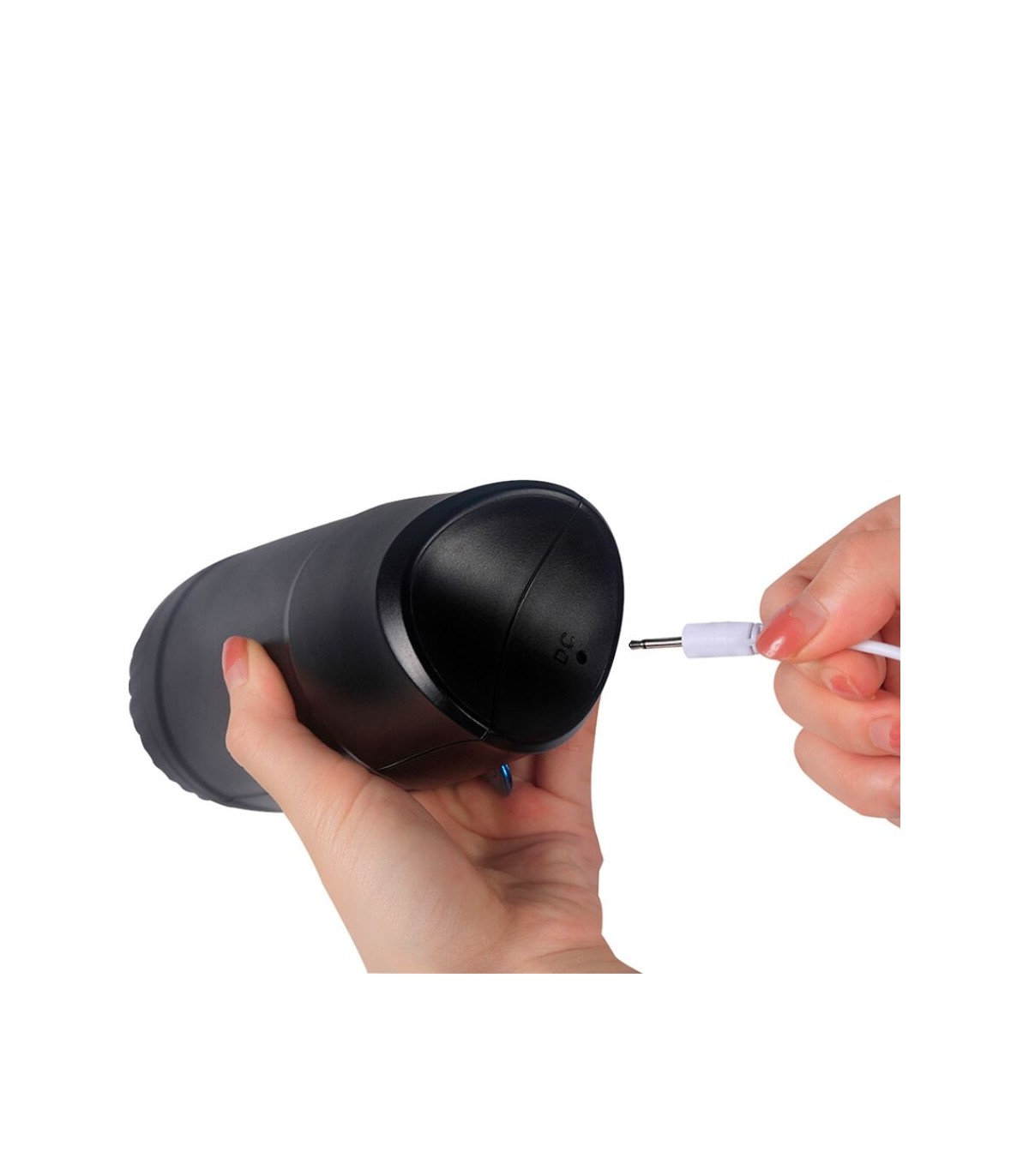 - Textura interna estimulante: El túnel interno está diseñado con estrías, nódulos y cámaras de succión que aumentan la fricción y la sensación de presión alrededor del pene. Las vibraciones se distribuyen a lo largo del canal, creando una experiencia aún más realista y satisfactoria.