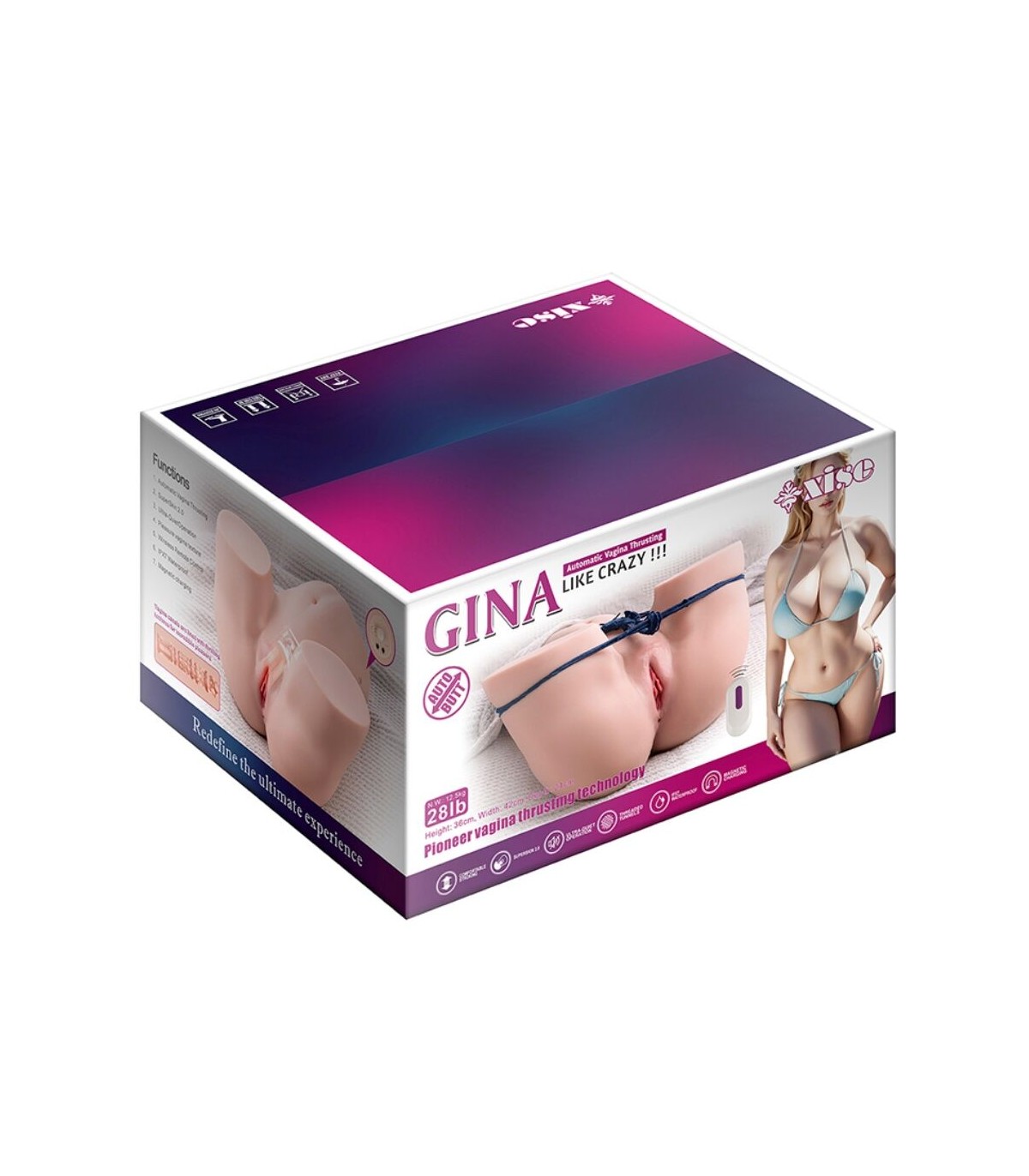 XISE - GINA MASTURBADOR VAGINA REALÍSTICO MULTIPOSICIÓN CON VIBRACIÓN Y CONTROL REMOTO