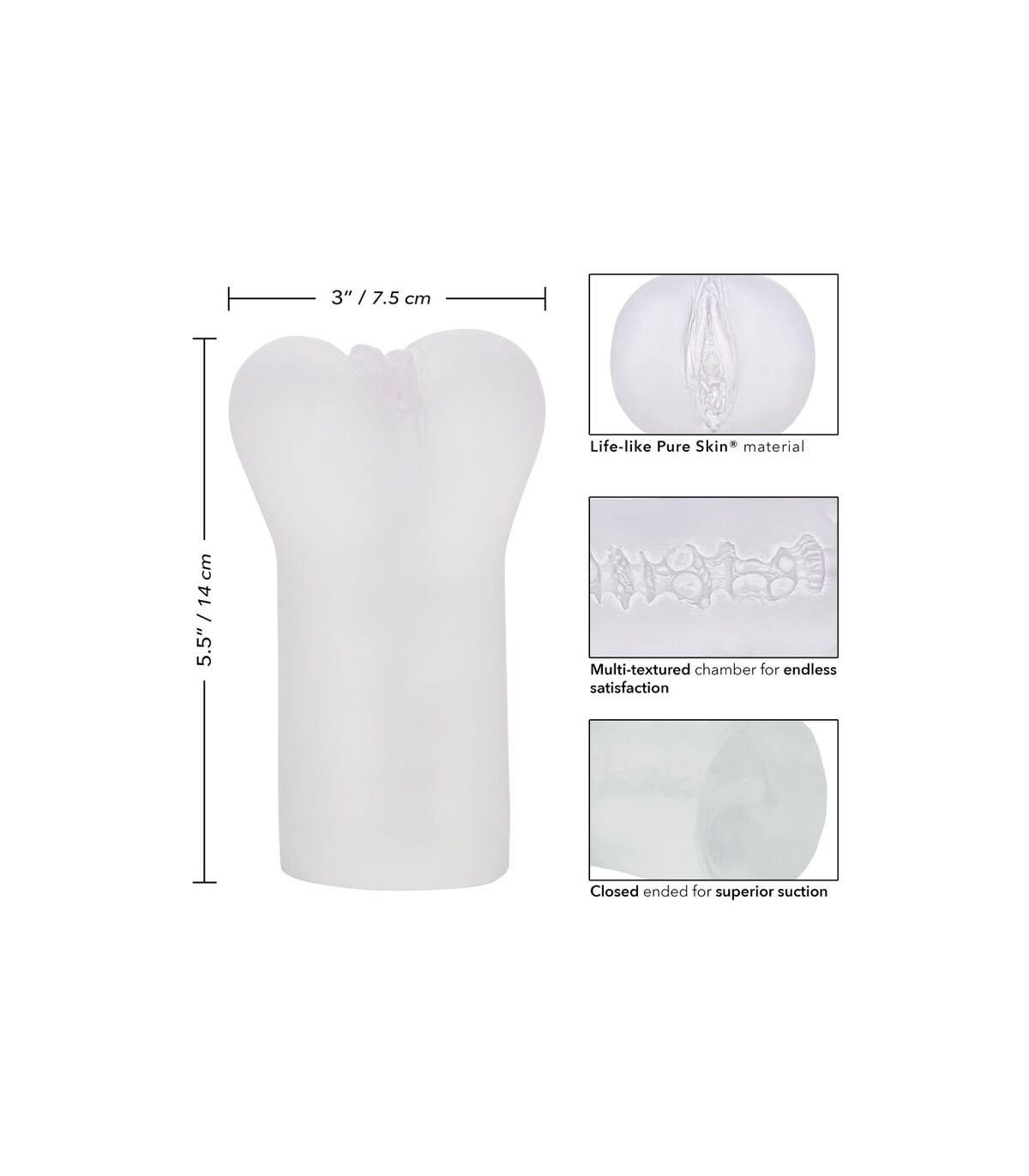 Material de imitación a piel real | Suave, ajustado y elástico | Cámara con múltiples texturas para una satisfacción infinita | Extremo cerrado para una succión superior | Higiénicamente superior y sin mantenimiento