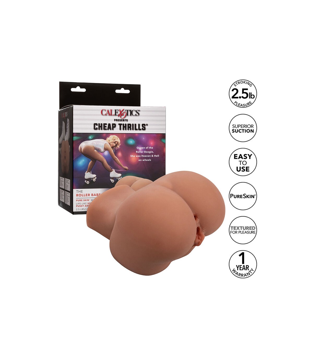 Experimenta la emoción de alta octanaje con Cheap Thrills The Roller Babe, un masturbador pesado de 2,5 libras / 1,1 kg hecho de material realista Pure Skin.