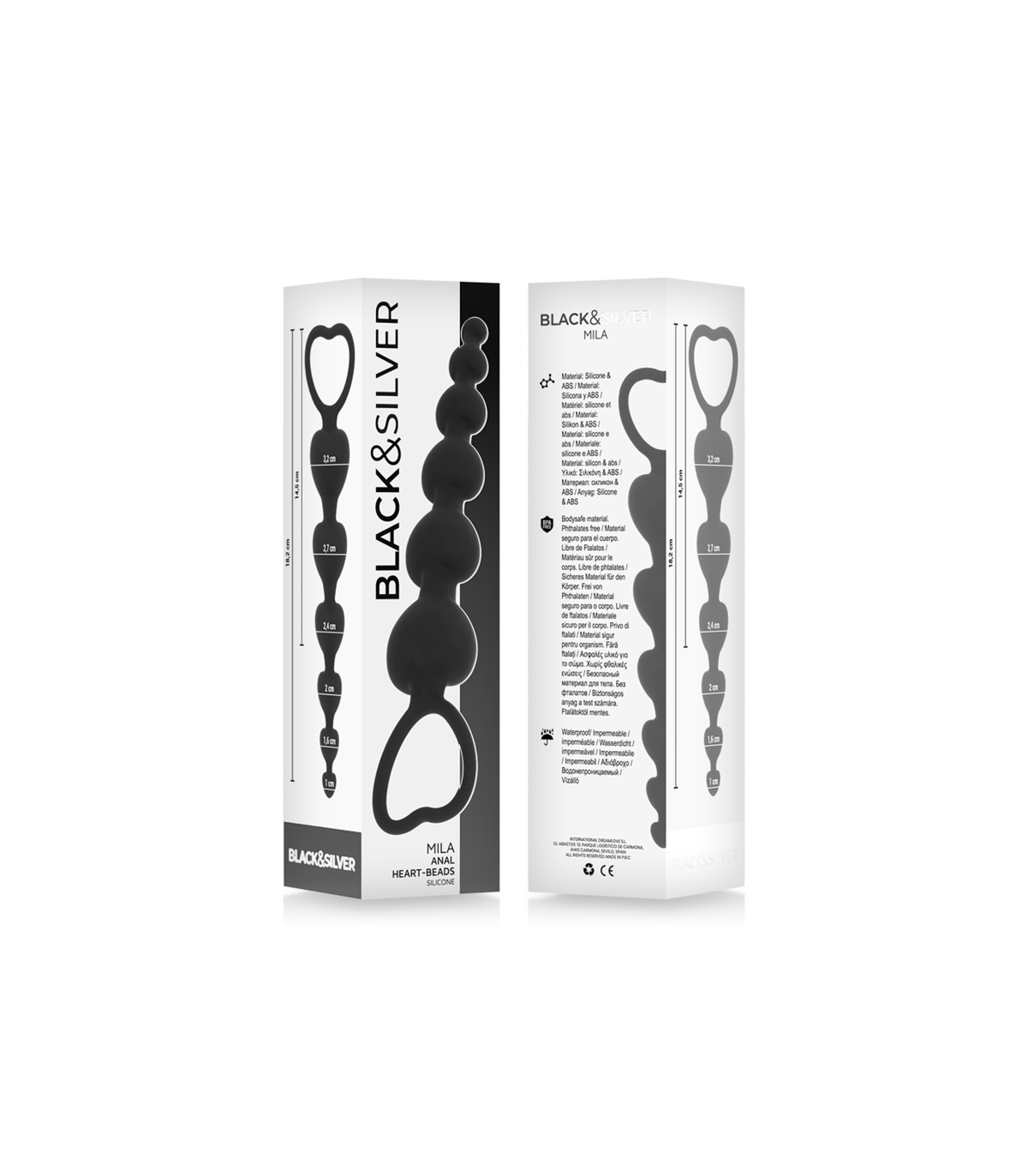 Aparte de sus estructuras y diseños versátiles, Black&Silver™ Milan Beads™ ofrecen una sensación suave. La superficie suave de la silicona inocua para el cuerpo es extremadamente higiénica y fácil de limpiar, ya que las bolas se utilizan analmente, se recomienda una desinfección completa con el Desinfectante Spray de Waterfeel™ antes y después de cada uso. La composición combina perfectamente al material. Especialmente a la hora de jugar con la puerta trasera, también es aconsejable utilizar lubricante, por ejemplo de Waterfeel™, Aqua™, Bioaqua™, Coquette™ o Aquatravel™.