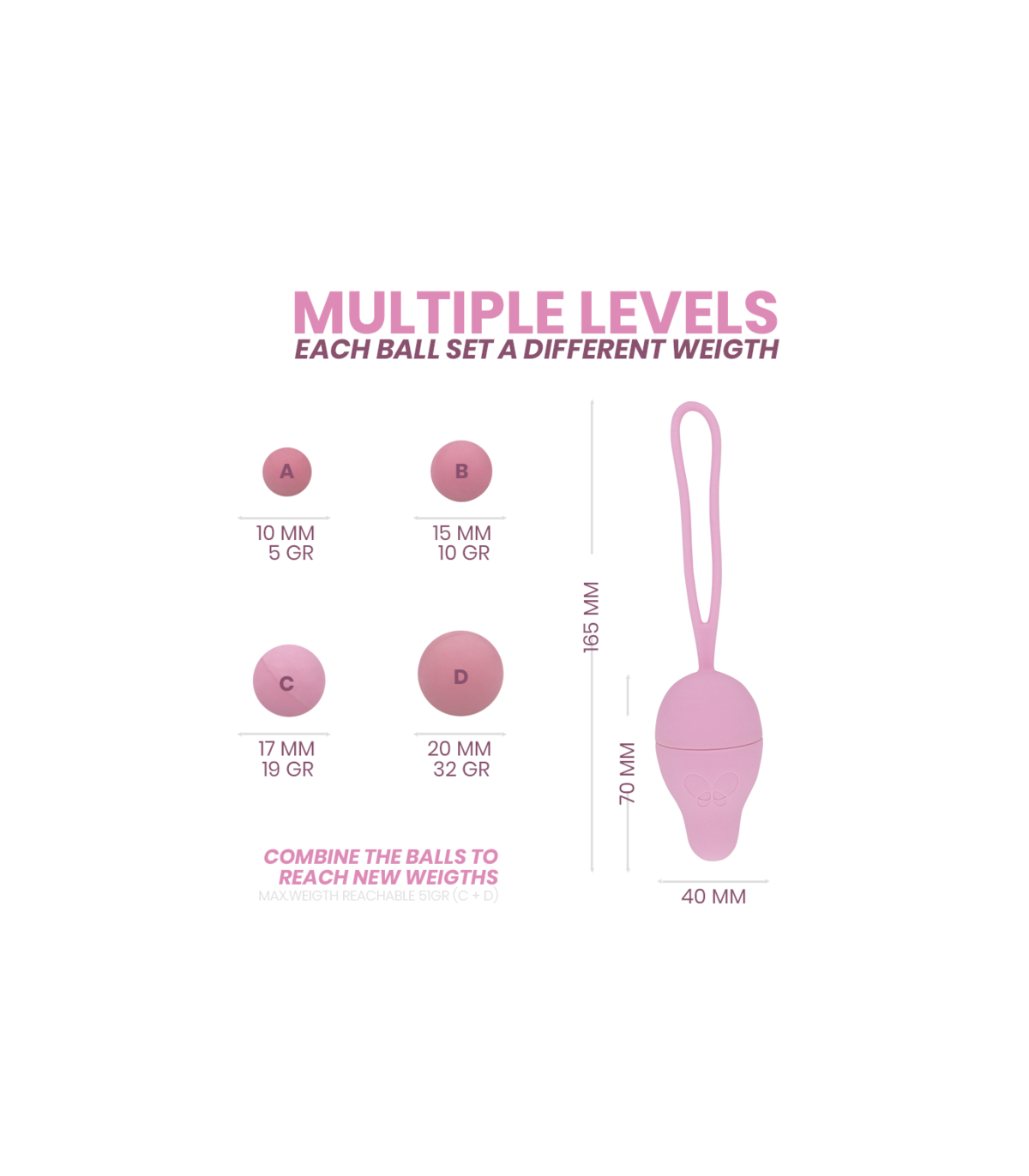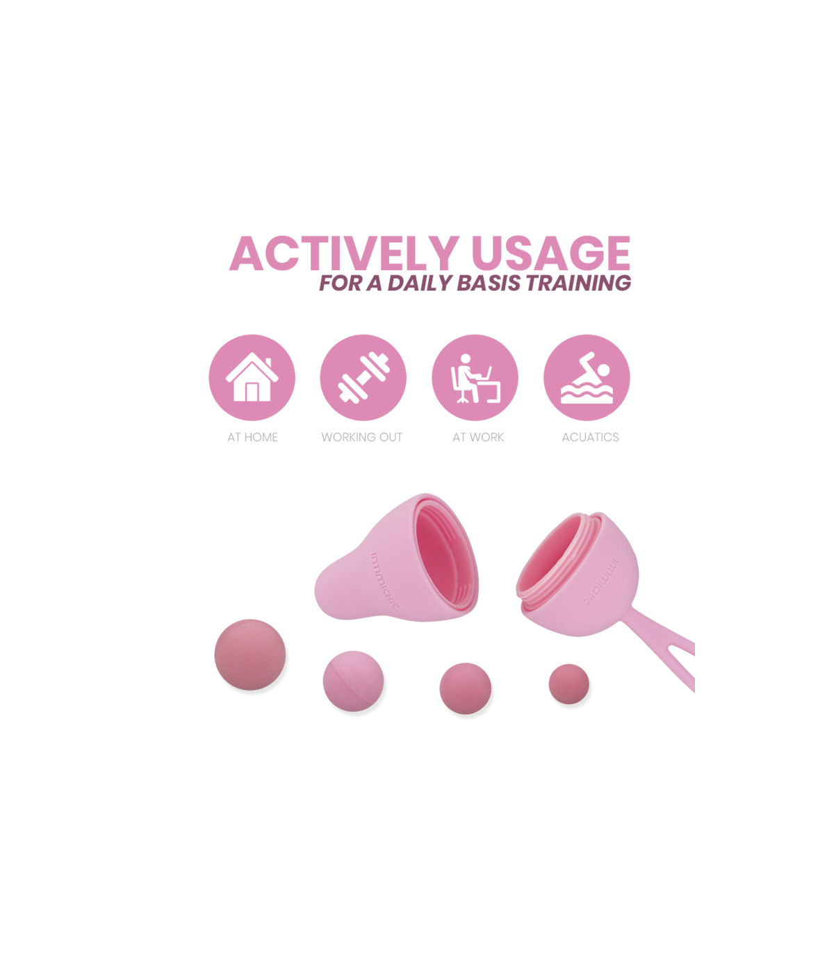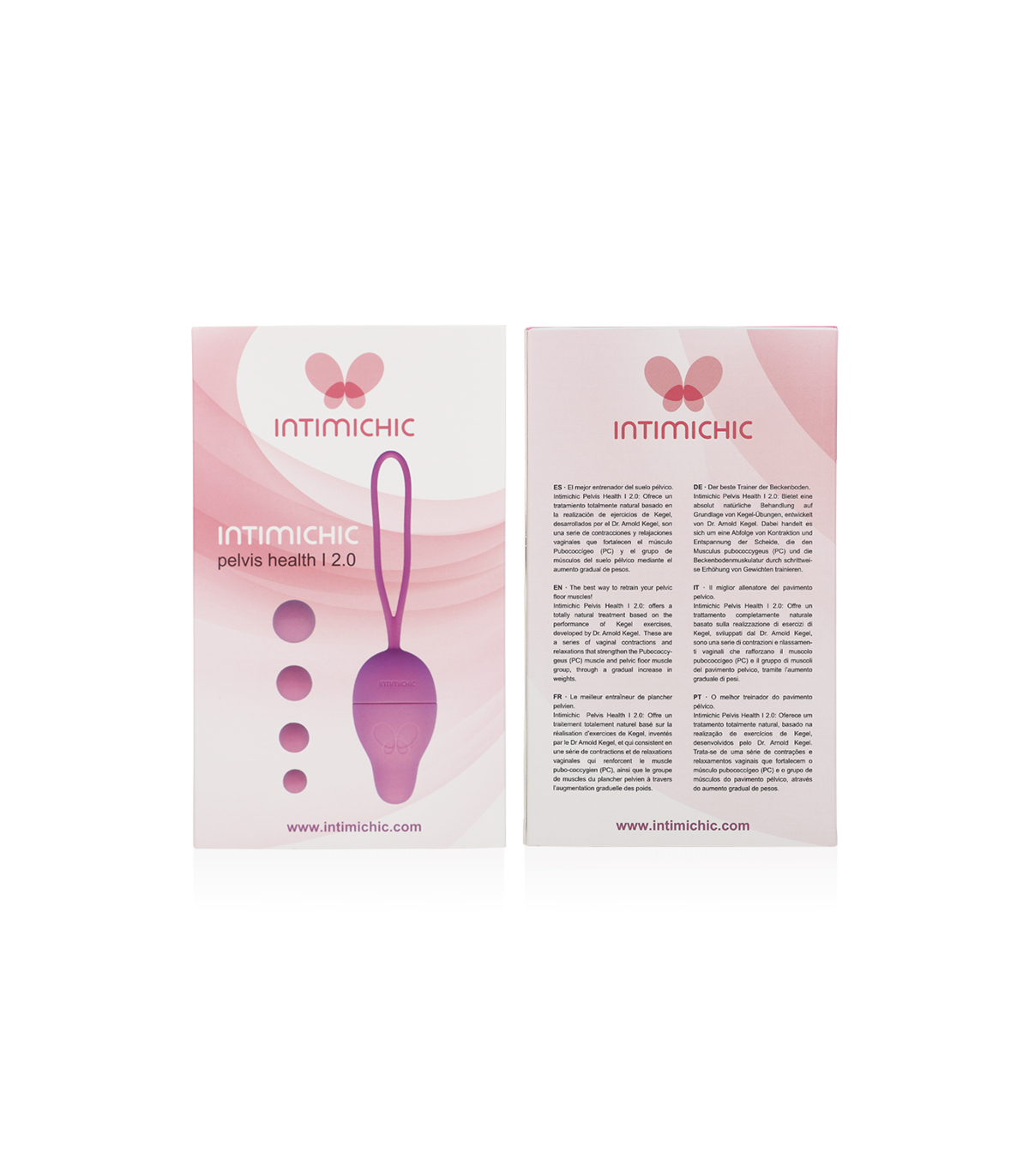 Intimichic Pelvis Health I 2.0 ; Basado en la realización de ejercicios de Kegel, desarrollados por el Dr. Arnold Kegel, son una serie de contracciones y relajaciones vaginales que fortalecen el músculo Pubococcígeo (PC) y el grupo de músculos del suelo pélvico mediante el aumento gradual de pesos.