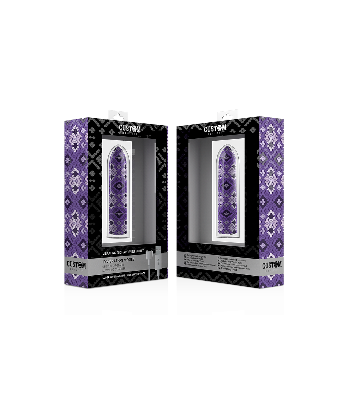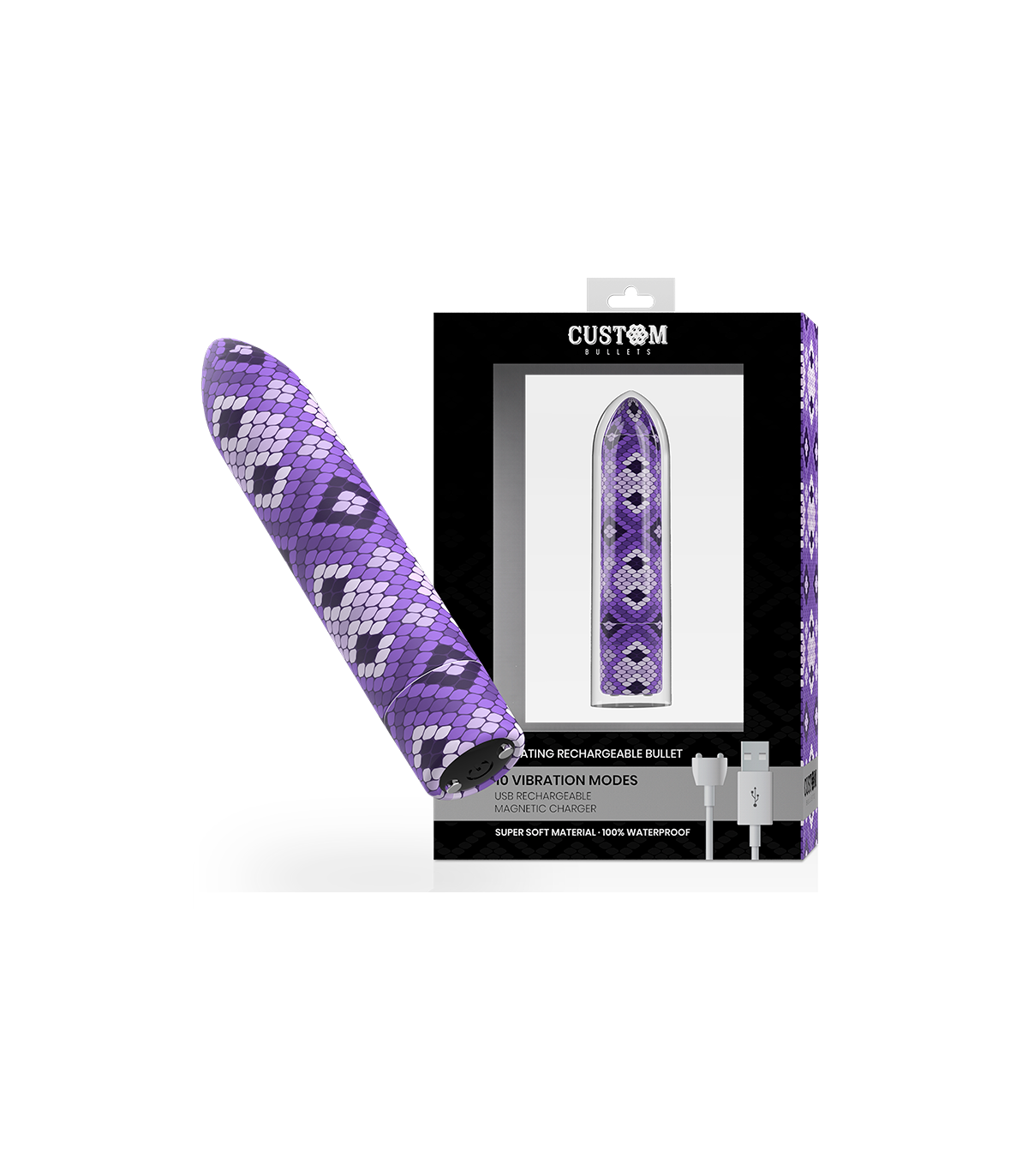 Custom Bullets brinda una tentación precisa. Diviértete mientras pasas por 10 funciones de vibración, pulsación y escalamiento con el botón de control de fácil toque.