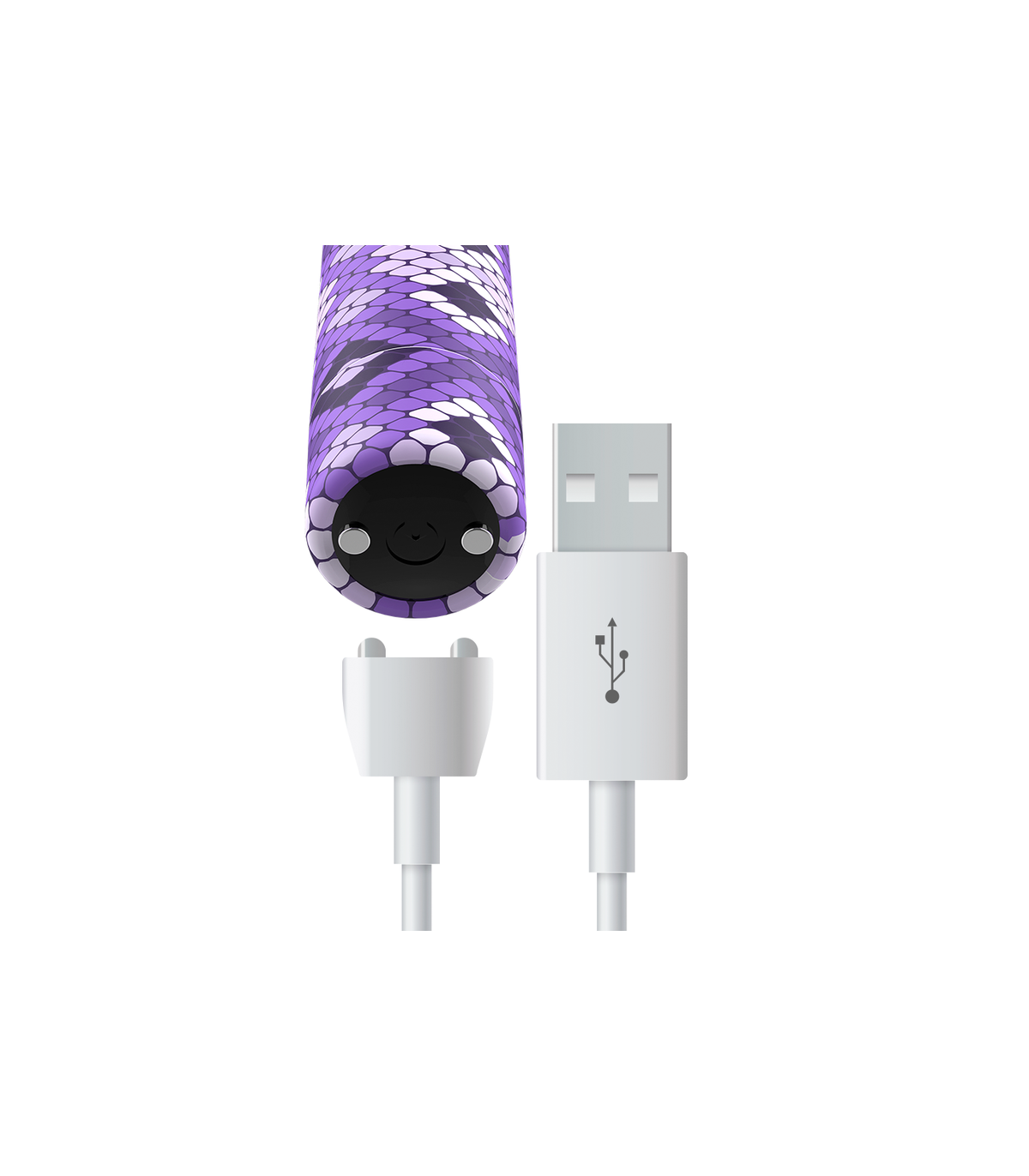 Carga tu pasión en solo 30 minutos conectando el cable USB provisto en el puerto de carga magnética en la parte posterior del masajeador. Acepta hasta 2 horas de vibraciones a baja velocidad y 70 minutos a alta velocidad.