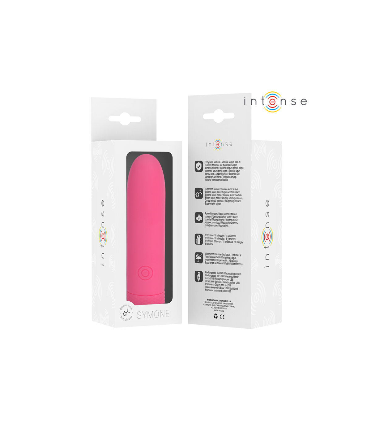 INTENSE - SYMONE BALA VIBRADORA RECARGABLE POR USB 8 VIBRACIONES ROSA 10 X 2.2 CM