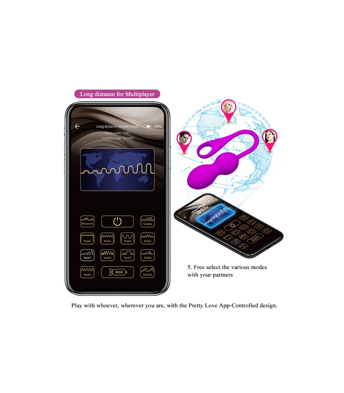 Entrena, tonifica y aprieta tu vagina, y diviértete durante días haciéndolo con las bolas de Kegel vibradoras Pretty Love de 12 funciones. Permítete a ti mismo, o incluso a tu pareja, experimentar y controlar las 12 funciones de vibración que incluyen una gama de velocidades y patrones para sensaciones internas intensas. Descubre y utiliza cualquiera de los 12 modos preestablecidos, o crea el tuyo propio con la aplicación gratuita controlada por teléfono móvil. Dale a tus músculos de Kegel el entrenamiento y el placer que se merecen con bolas de Kegel intercambiables y vibrantes.