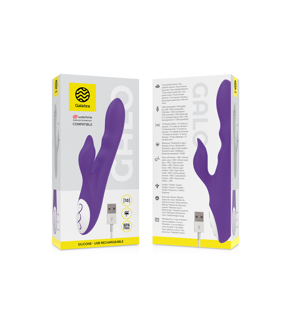 Galo, una obra maestra de las sensaciones eróticas. Galo tiene tres zonas de vibración independientes para gozar de una experiencia fantástica. El brazo contorneado y estimulante tiene su propio motor y se puede ajustar fácilmente doblándolo hacia cualquier lugar. Galo tiene dos motores, uno el brazo flexible y otro en la zona superior. Motores potentes y silenciosos con 10 patrones de vibración.