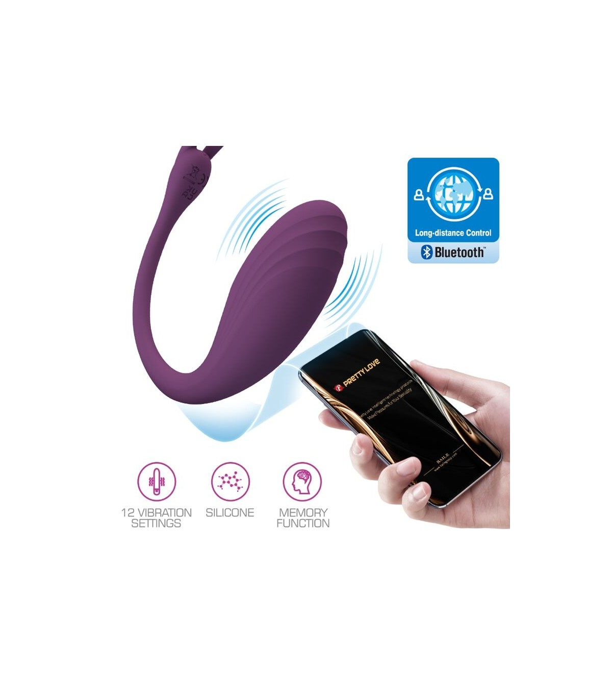 Desde dentro o fuera de casa, deja que este huevo de amor recargable controlado por aplicación Pretty love con 12 funciones le dé vida a tu vida sexual.