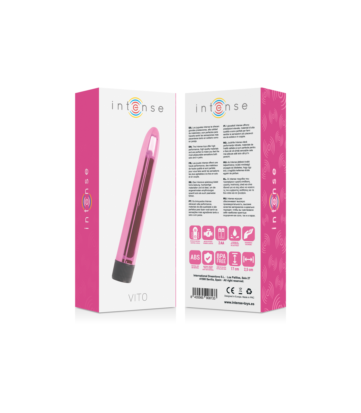 ¡Los vibradores VITO INTENSE son dulces, básicos y ofrecen fuertes vibraciones en ambos lados! Con su robusta dimensión de 17 cm, puede llevar estos masajeadores de viaje donde quiera que vaya. Perfecto para experimentar en cualquier momento y en cualquier lugar.