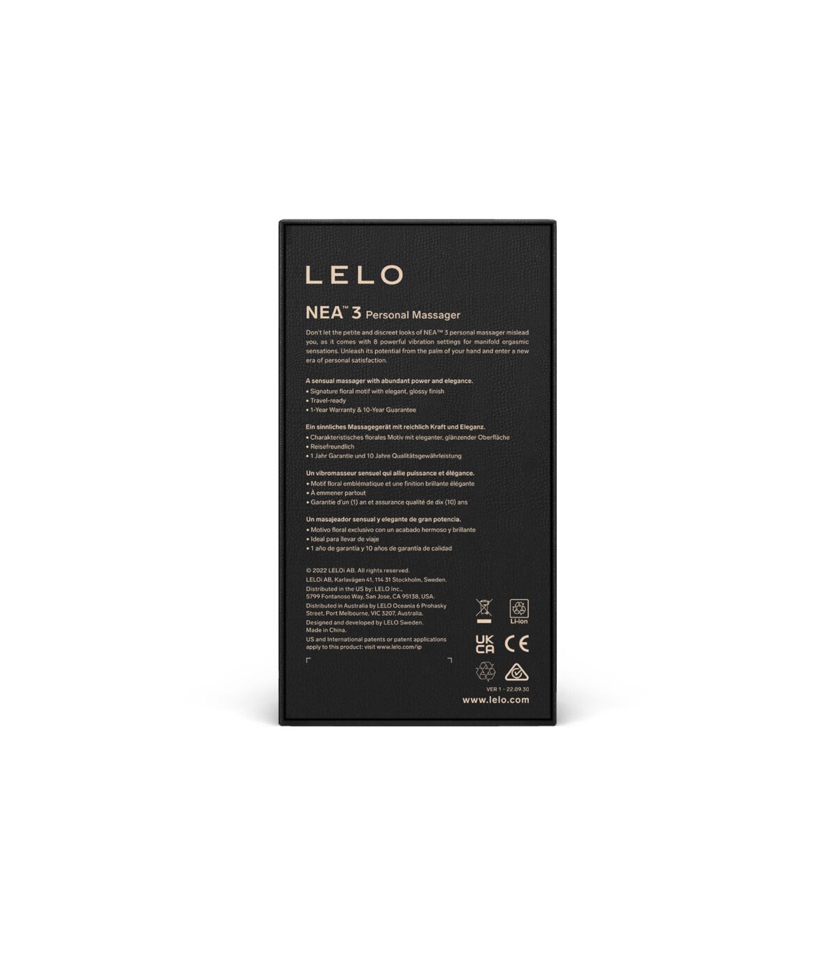 NEA™ 3 es un masajeador personal de tamaño pequeño ideal para parejas que desean abrir las puertas de la sensualidad en su relación. Contiene un diseño floral exclusivo y ofrece diez modos de placer con varias intensidades. Se trata de un aparato de placer multisensorial, discreto pero potente, apto para disfrutar en solitario o jugar en pareja.