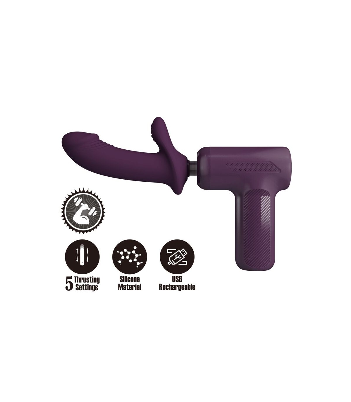 Esta pistola de masaje súper potente tiene 5 configuraciones de empuje y un cabezal de silicona reemplazable. Lo más importante es que el motor más potente dentro de la pistola de masaje te brindará la experiencia erótica más poderosa y una vibración increíble y una sensación de empuje. Si prefieres que tus juguetes tengan características poderosas, elige la última pistola de masaje súper poderosa de Pretty Love, resolverá y liberará todo tu estrés y te brindará un placer impresionante y grandioso.