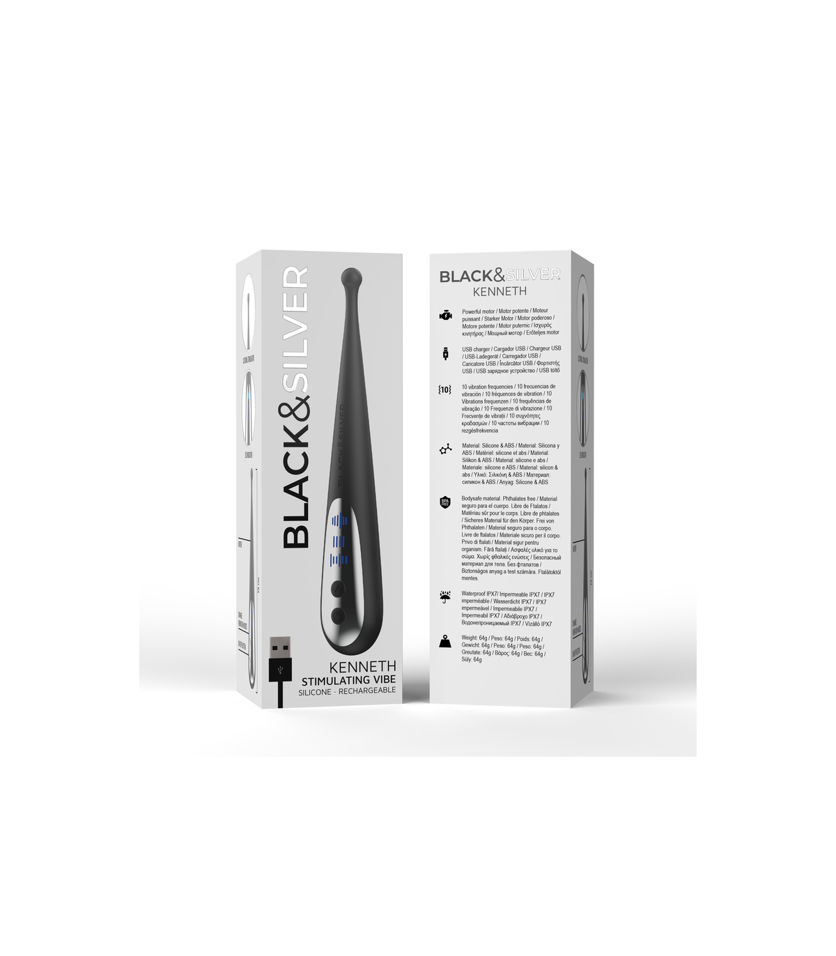 La gama KENNETH STIMULATING VIBE cuenta con una punta redondeada vibradora que estimula todos tus puntos calientes con una precisión milimétrica: labios, clítoris, pezones o perineo. El pulsing clitorial de Black&Silver estimula todas tus zonas erógenas con vibraciones circulantes.