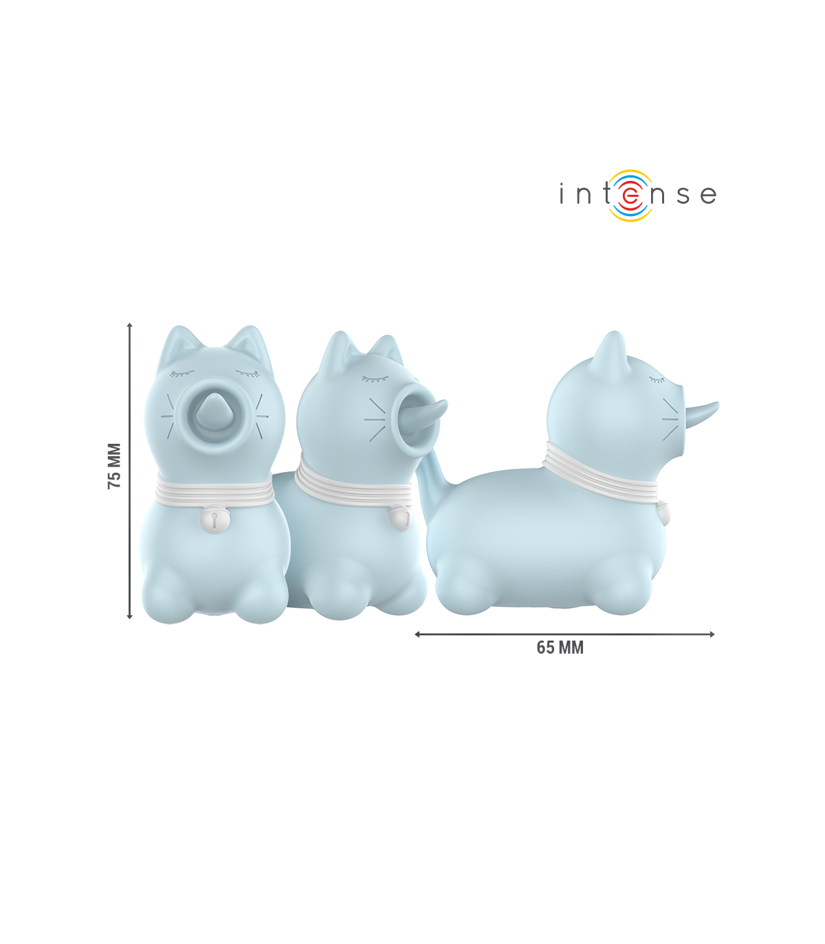 El diseño exterior es dulce, moderno y funcional, con una estética inspirada en la ternura y el juego. Su color azul suave (Pantone similar a 292U) le da un toque de frescura y tranquilidad, sin perder el encanto de un juguete sofisticado y lleno de intención. Es compacto, ergonómico y fácil de sostener, perfecto para uso individual o como parte del juego en pareja.