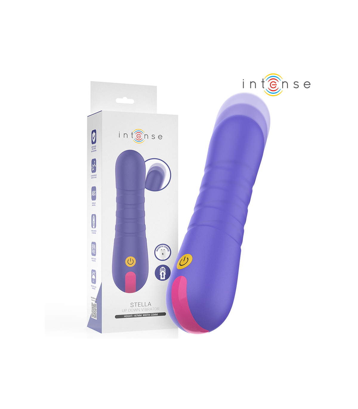 Explora nuevas dimensiones de placer con STELLA, el elegante juguete de empuje vertical de la marca INTENSE, diseñado para ofrecer una estimulación intensa, rítmica y profundamente satisfactoria. Gracias a su avanzada tecnología de movimiento vertical, STELLA recrea una penetración realista con precisión y potencia. Penetración rítmica con control total, con su sistema de empuje automático, STELLA eleva la experiencia íntima a otro nivel. Perfecto tanto para quienes buscan un primer juguete sofisticado como para usuarias avanzadas que desean una estimulación profunda y realista.