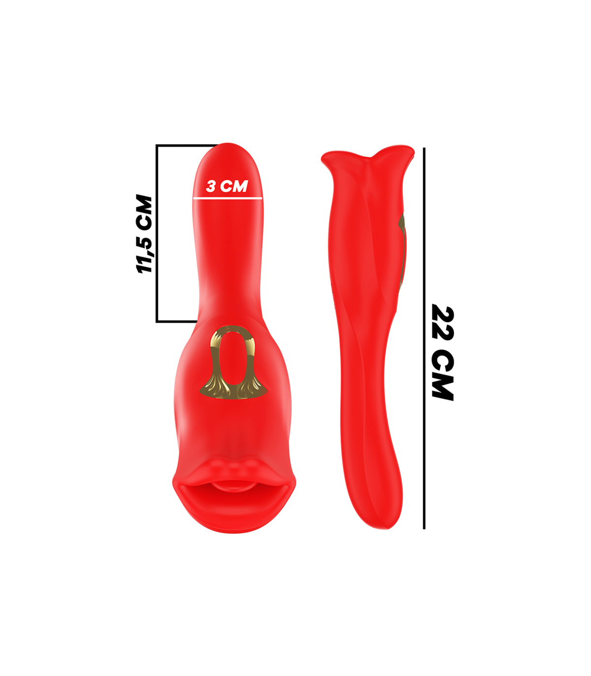 La suavidad excepcional de la silicona que recubre este estimulador garantiza una experiencia táctil inigualable. La textura suave y sedosa acaricia tu piel, proporcionando un contacto delicado que intensifica cada momento de placer. Moldeado con precisión en la forma irresistible de una boca y tintado en un apasionante color rojo, este juguete es una obra de arte erótica que estimulará tanto tus sentidos visuales como físicos.