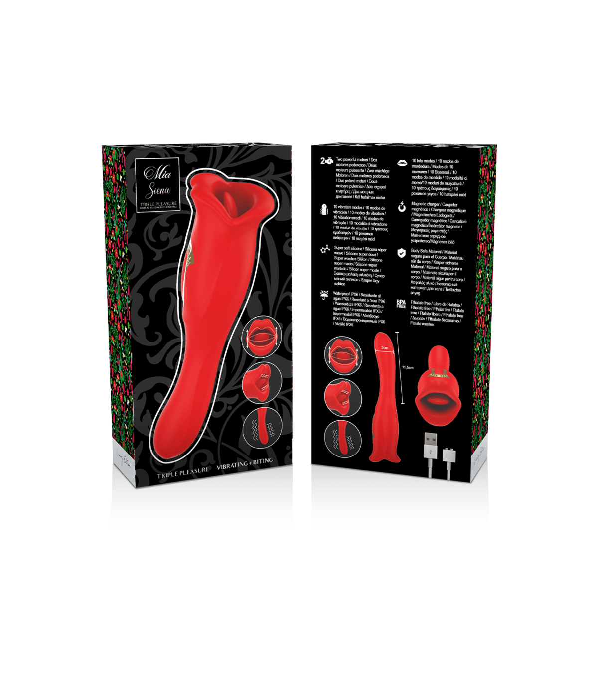Descubre el arte de la seducción con este estimulador que combina a la perfección diseño vanguardista y tecnología de vanguardia. Suma emoción a tus momentos íntimos y deja que la pasión florezca con cada mordida y vibración de este cautivador juguete en forma de boca.
