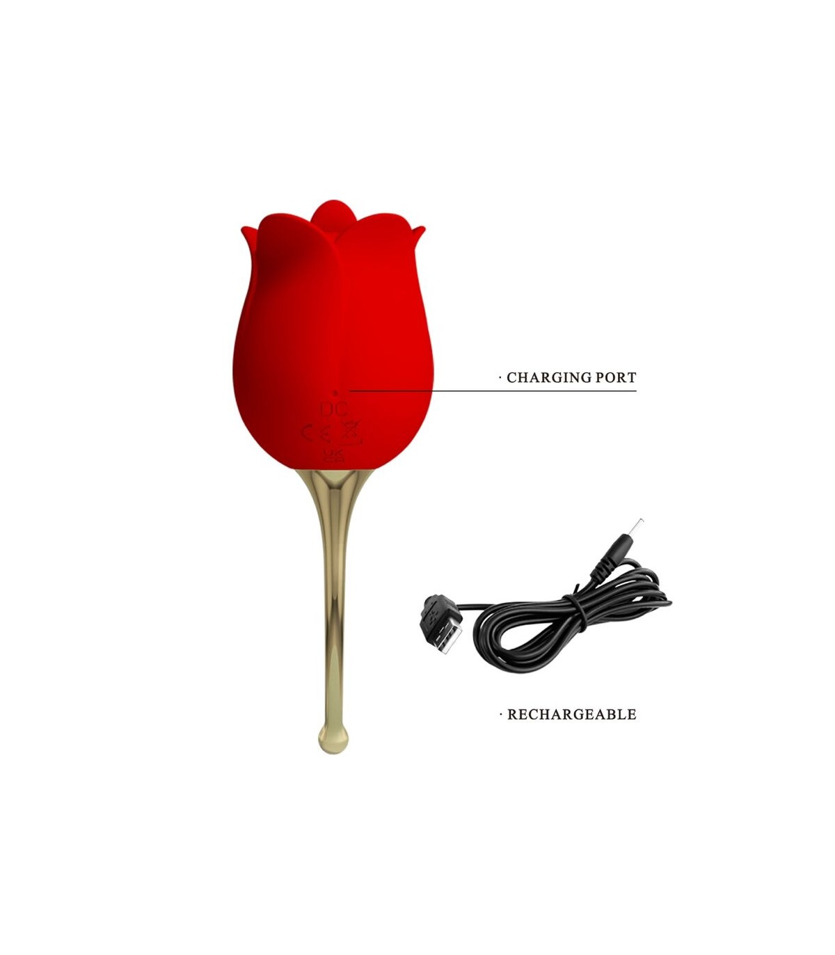 Pretty Love Rose Lover Vibrator El vibrador de rosa para lamer la lengua es un producto íntimo femenino que puede estimular las partes privadas hasta el orgasmo. Con forma de rosa realista, este vibrador se puede llevar a cualquier parte o colocar sobre una mesa como exhibición. Las lindas rosas pequeñas te permiten experimentar el máximo placer del sexo oral en cualquier momento, lo que ayuda a alcanzar el orgasmo en poco tiempo. Mantén presionado el botón de encendido durante 2 segundos para encender, la luz roja se enciende, presiona el botón de encendido nuevamente, puedes comenzar a disfrutar de 12 fuertes frecuencias de oscilación y vibración respectivamente. Material de silicona seguro y sedoso, carga USB, te brinda un placer diferente.