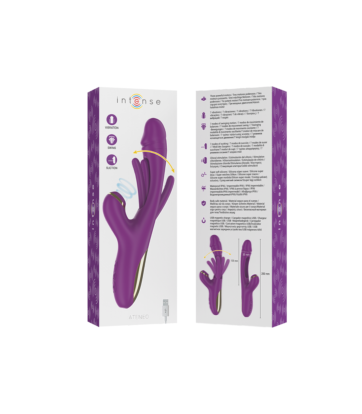 Bienvenidos al mundo de la máxima satisfacción con el masturbador femenino ATENEO de la marca INTENSE. Este lujoso juguete sexual, con su diseño en color morado y elegante revestimiento dorado, te llevará a un viaje de placer sin igual. Equipado con tres potentes motores, ATENEO está diseñado para satisfacer todos tus deseos y anhelos más profundos.