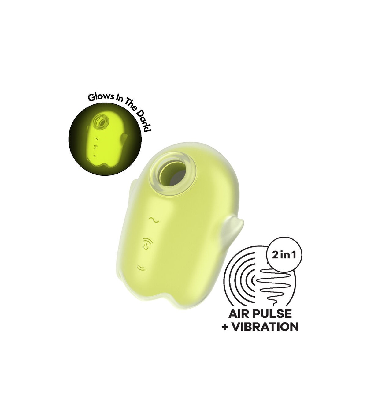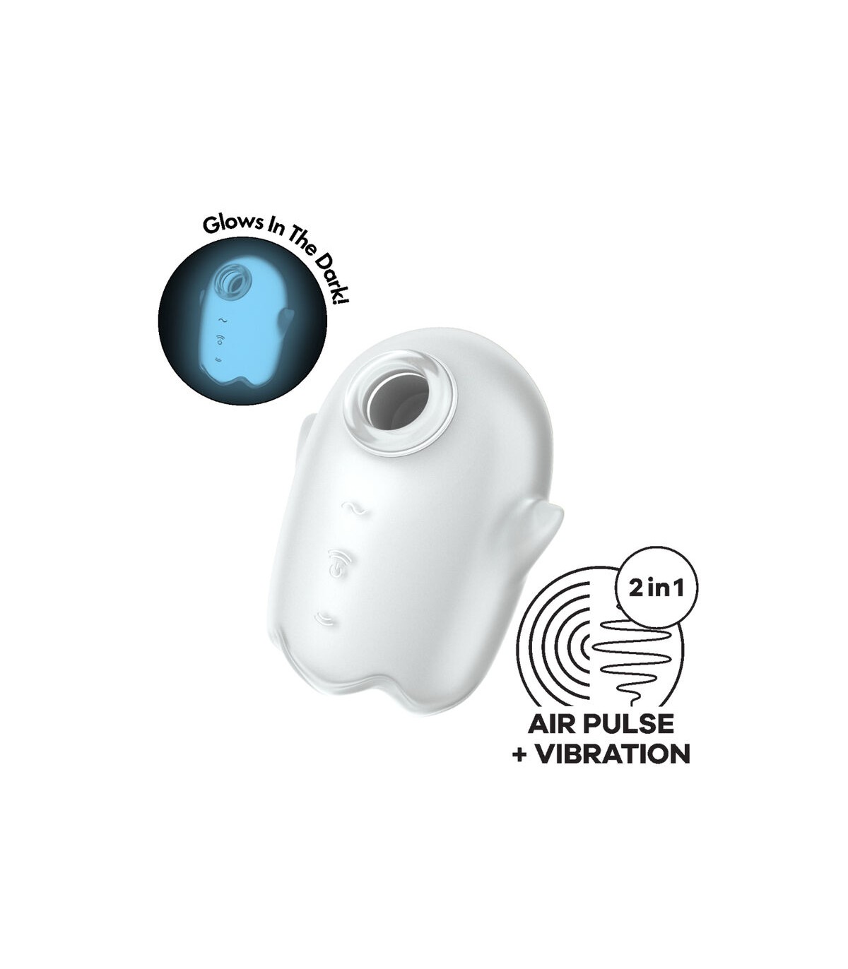 El Satisfyer Glowing Ghost presenta la innovadora tecnología de pulso de aire de Satisfyer que estimula el clítoris completamente sin contacto. Solo tienes que colocar su abertura alrededor del clítoris y disfrutar de uno de los 11 programas de ondas de presión. Si deseas aún más estimulación, puedes combinar la tecnología Air Pulse con la función de vibración, o usar ambas funciones de forma independiente, ¡como quieras!