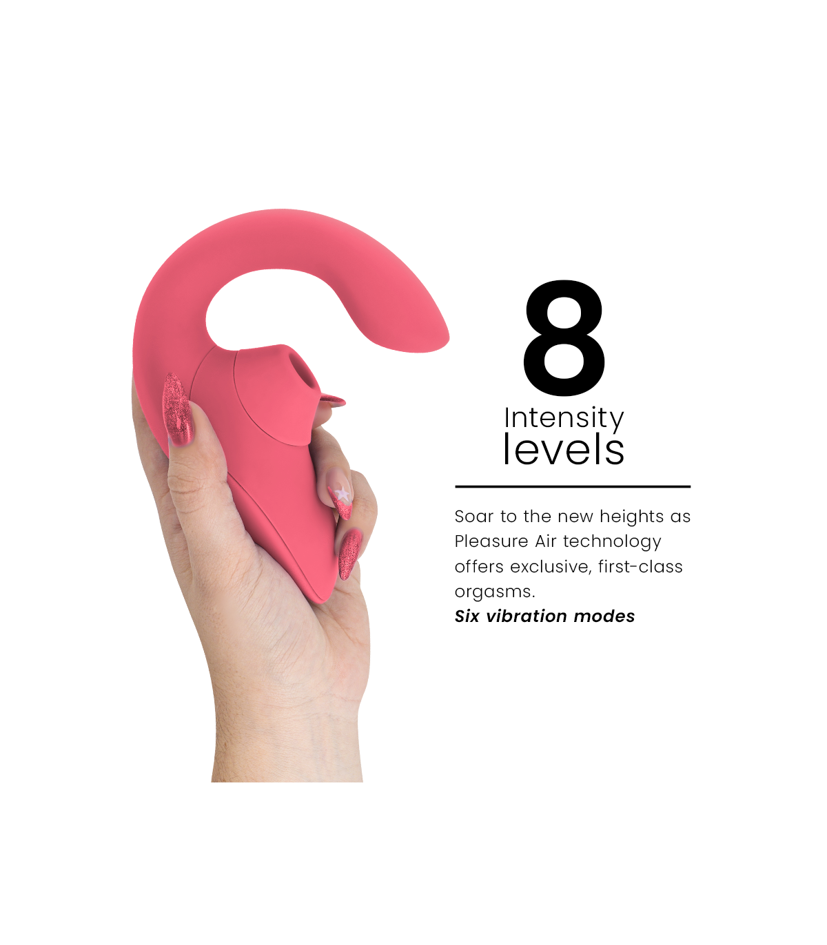 8 niveles de intensidad - Ya sea que prefieras un placer suave y delicado, potente e intenso, o algo intermedio, tu próximo orgasmo está a solo pulsar un botón. Los niveles de intensidad están perfectamente equilibrados y ofrecen la configuración perfecta para cada estado de ánimo.