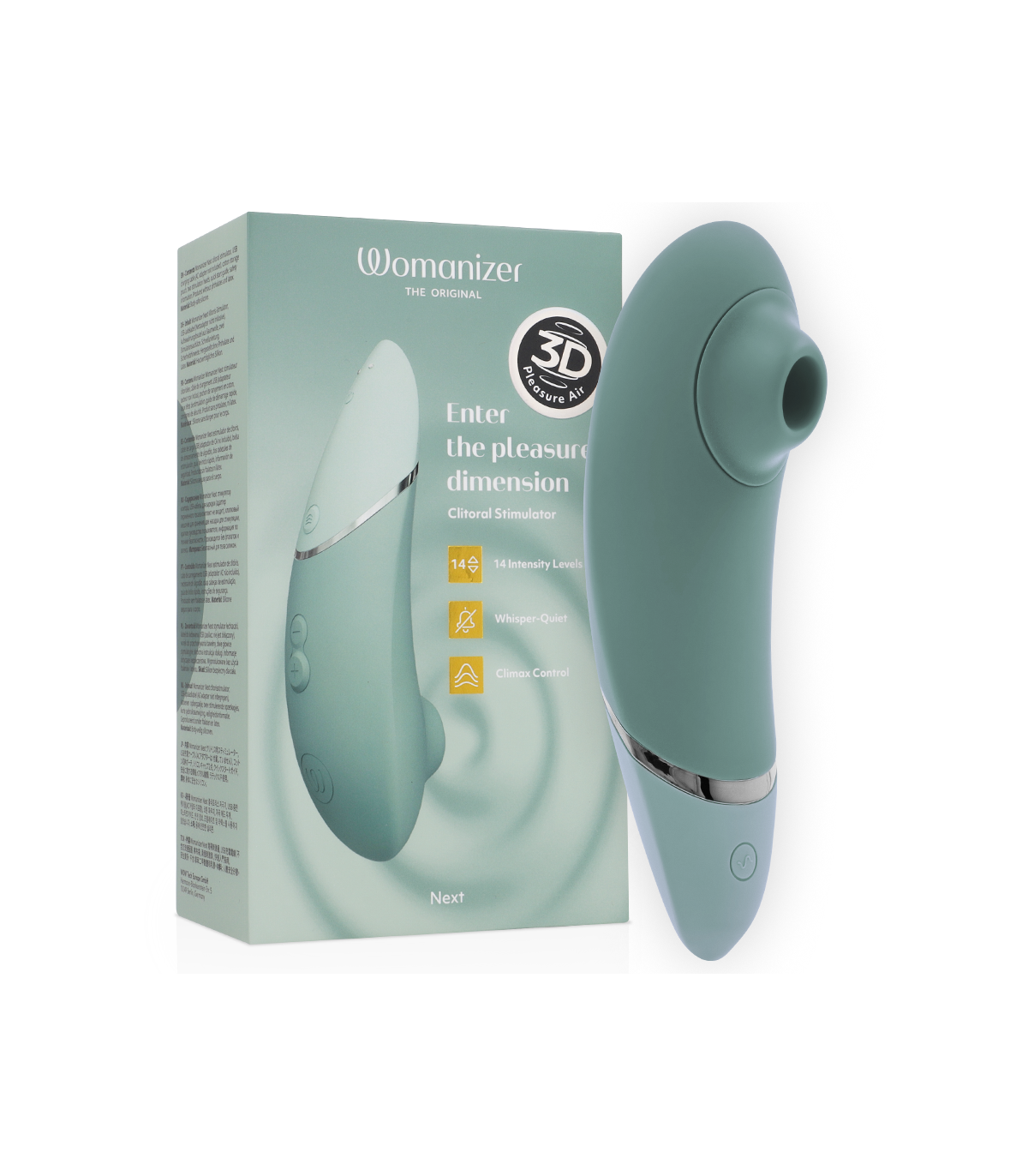 Estimulador de aire 3D Pleasure con control de clímax, como se ve en Netflix. Womanizer Next ofrece una estimulación más profunda y natural para orgasmos múltiples con niveles de profundidad personalizables y un rendimiento silencioso.