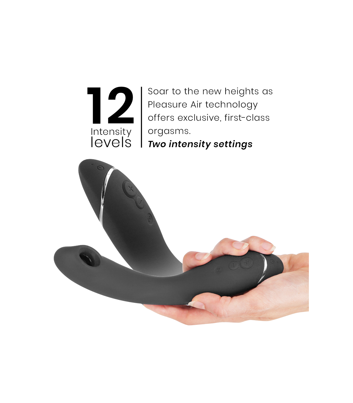 Los 12 niveles de intensidad de Pleasure Air se controlan fácilmente con dos botones, ya sea aumentando o disminuyendo las sensaciones, y los 3 niveles de vibración se pueden alternar con solo presionar un botón.  La función de brillo posterior te permite bajar de tu subidón maravilloso bajando el OG a su configuración más baja para un final relajante.