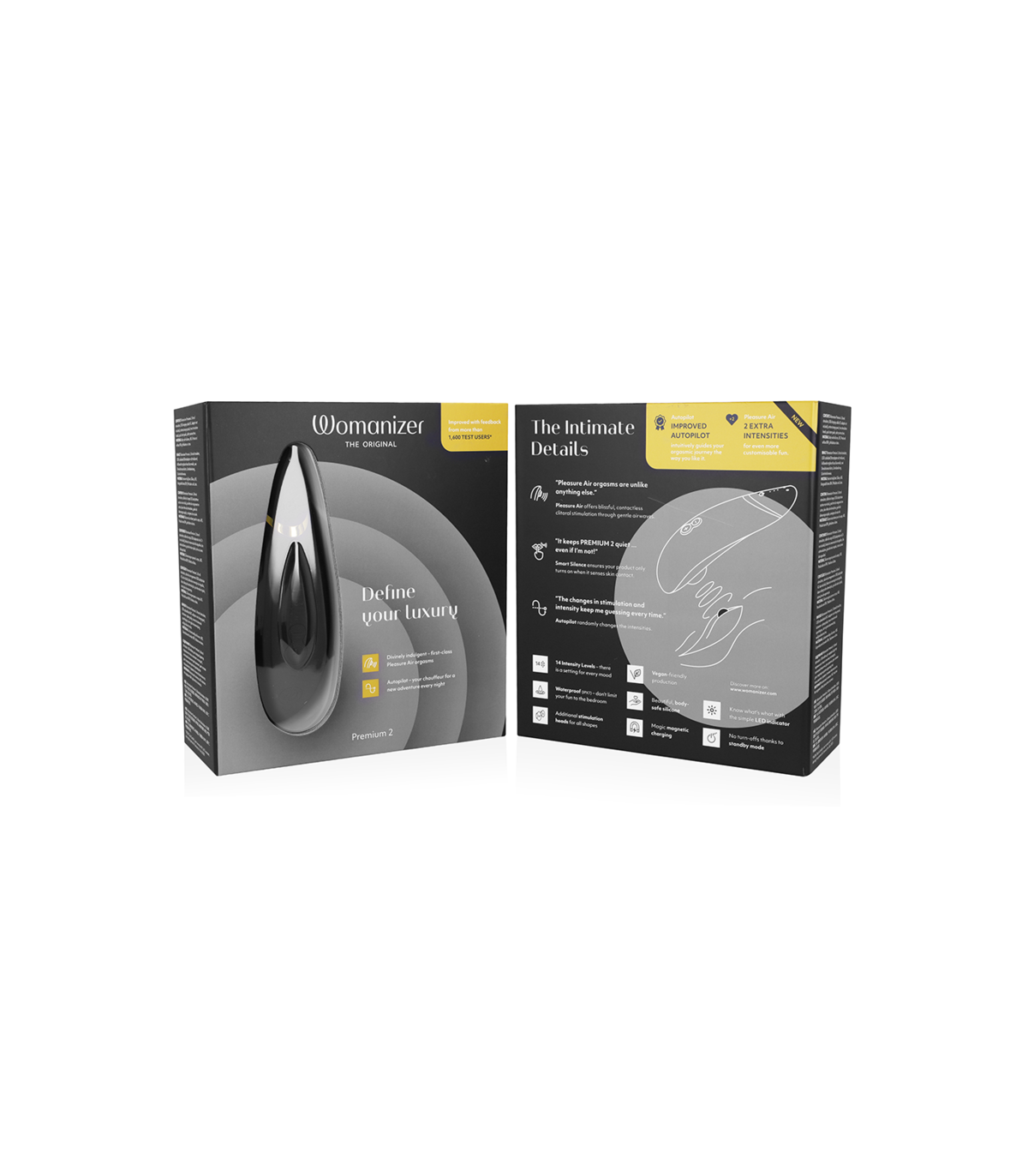 El Womanizer Premium 2 ha mejorado su juego con más niveles de intensidad que nunca y una función de piloto automático mejorada para llevarte al viaje de tu vida.  Con la tecnología Pleasure Air original, este es el juguete definitivo para las mujeres que buscan algo más que otro dispositivo con el que jugar.
