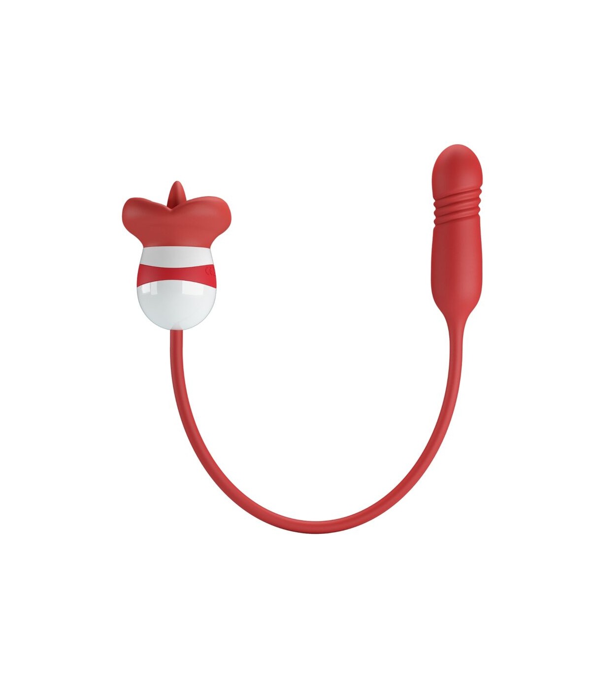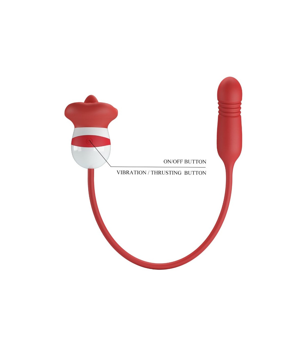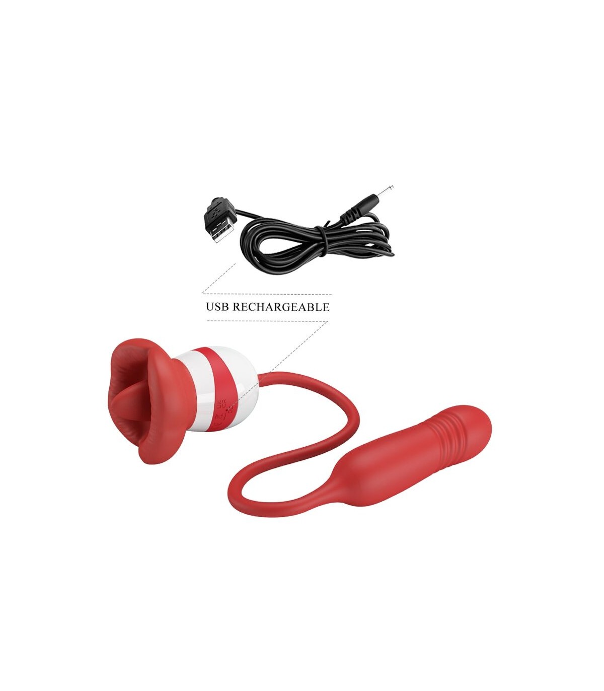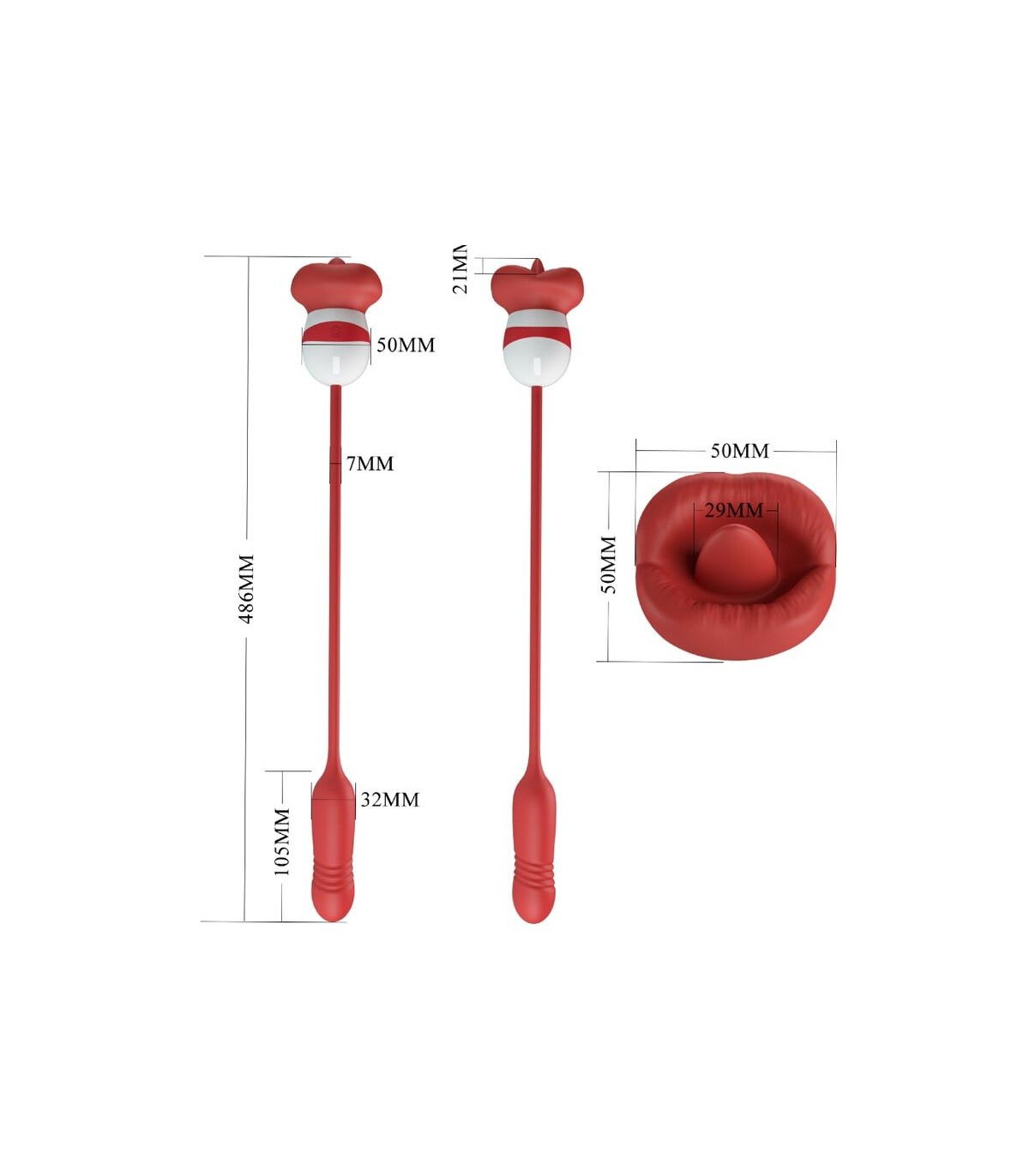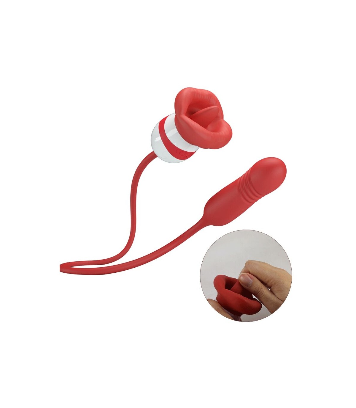 Este vibrador con forma de boca tiene una bala de empuje única y una lengua que lame.