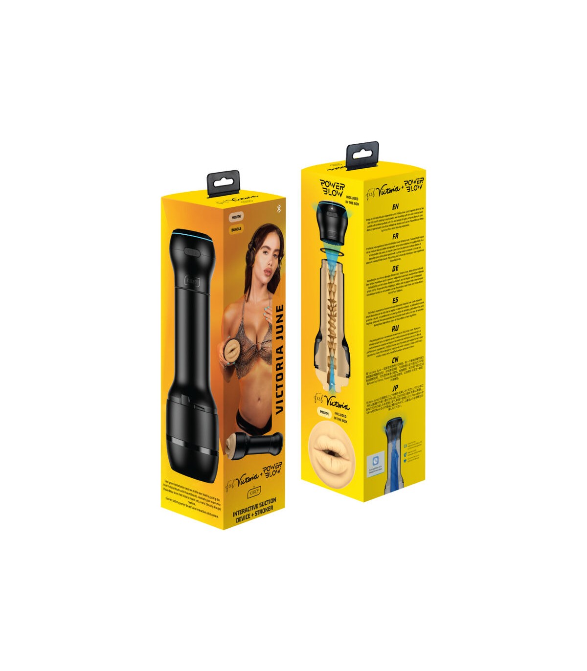 El FeelVictoria Mouth Stroker fue diseñado para usarse con PowerBlow, la ventosa de Kiiroo y Keon, el masturbador insignia de Kiiroo que acercará más que nunca a los fanáticos a sentir lo que es estar con Victoria. El PowerBlow es un dispositivo de succión interactivo que se ajusta al extremo de los Strokers Kiiroo Feel (Stars) y otras marcas líderes que utilizan el mismo mecanismo de rosca que los Strokers Feel (Stars).