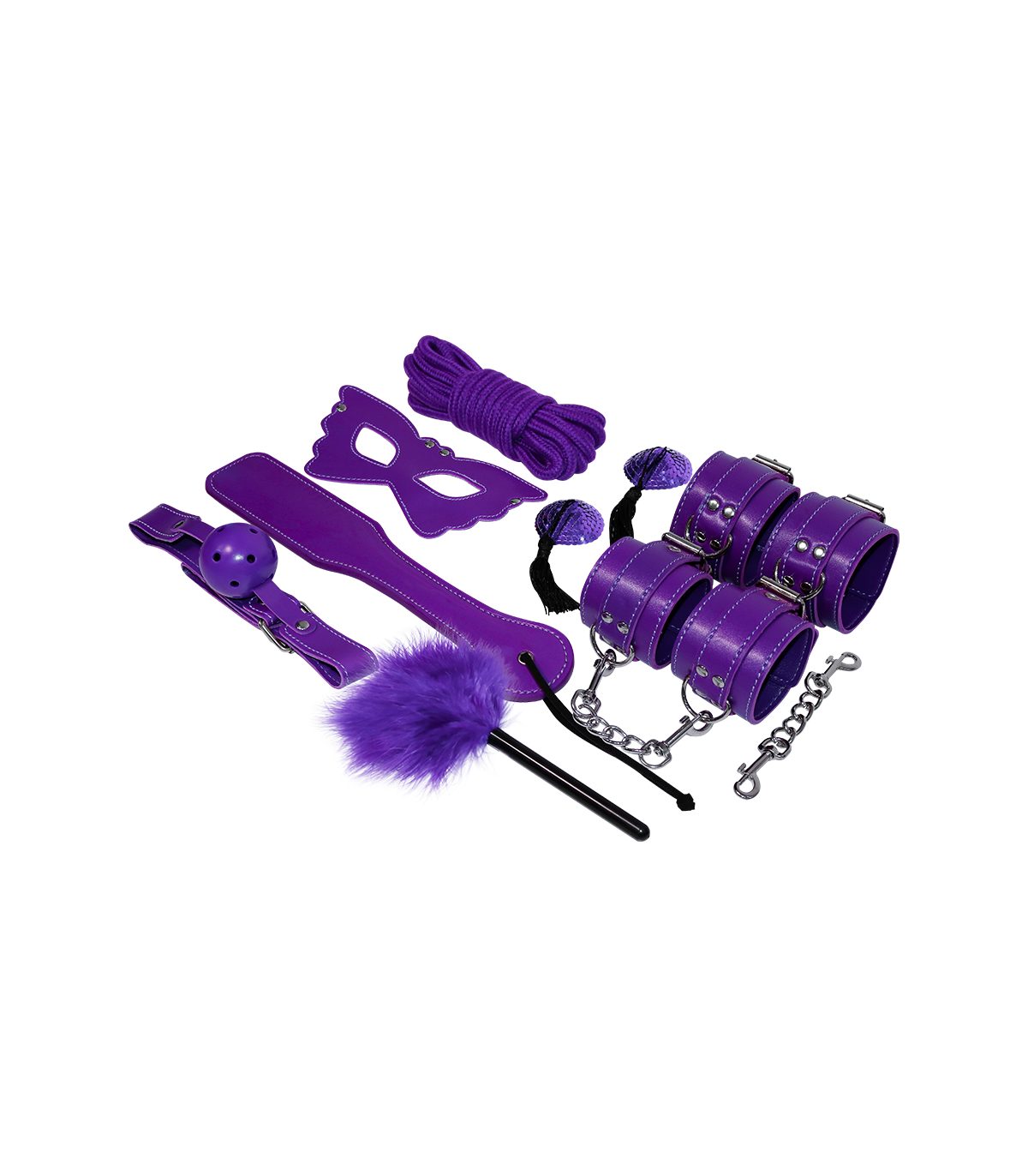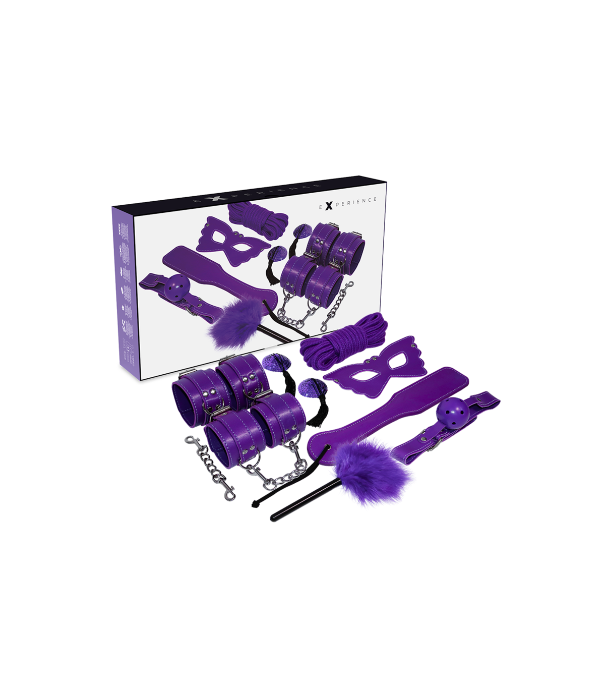 Con Experience tendrás todo lo necesario para practicar BDSM en este set Bondage; todo de cuero sintético, todo de color lila. Y es que no os faltará de nada ya seáis principiantes o jugadores avanzados. ¿No os lo creéis?