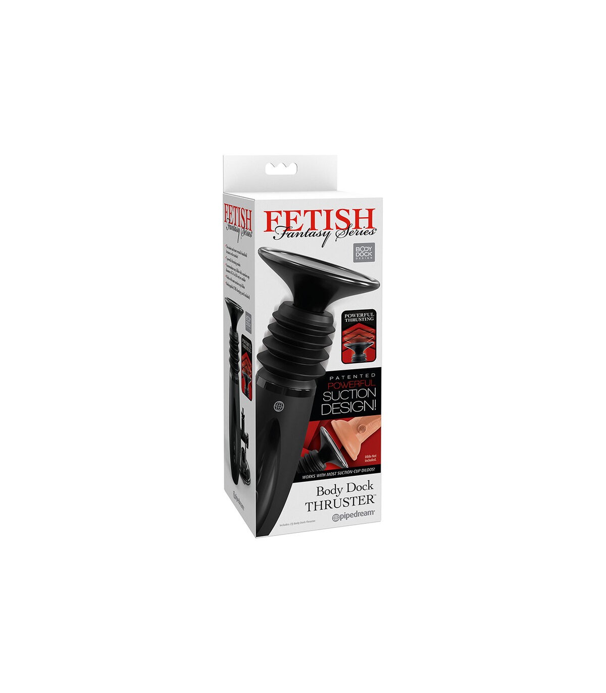 ¡El Body Dock Thruster funciona con la mayoría de los consoladores del mercado hoy en día! La placa de acoplamiento de 3.4 pulgadas cuenta con un diseño patentado de Push & Play, que te permite colocar fácilmente tu accesorio de ventosa favorito antes de empezar.
