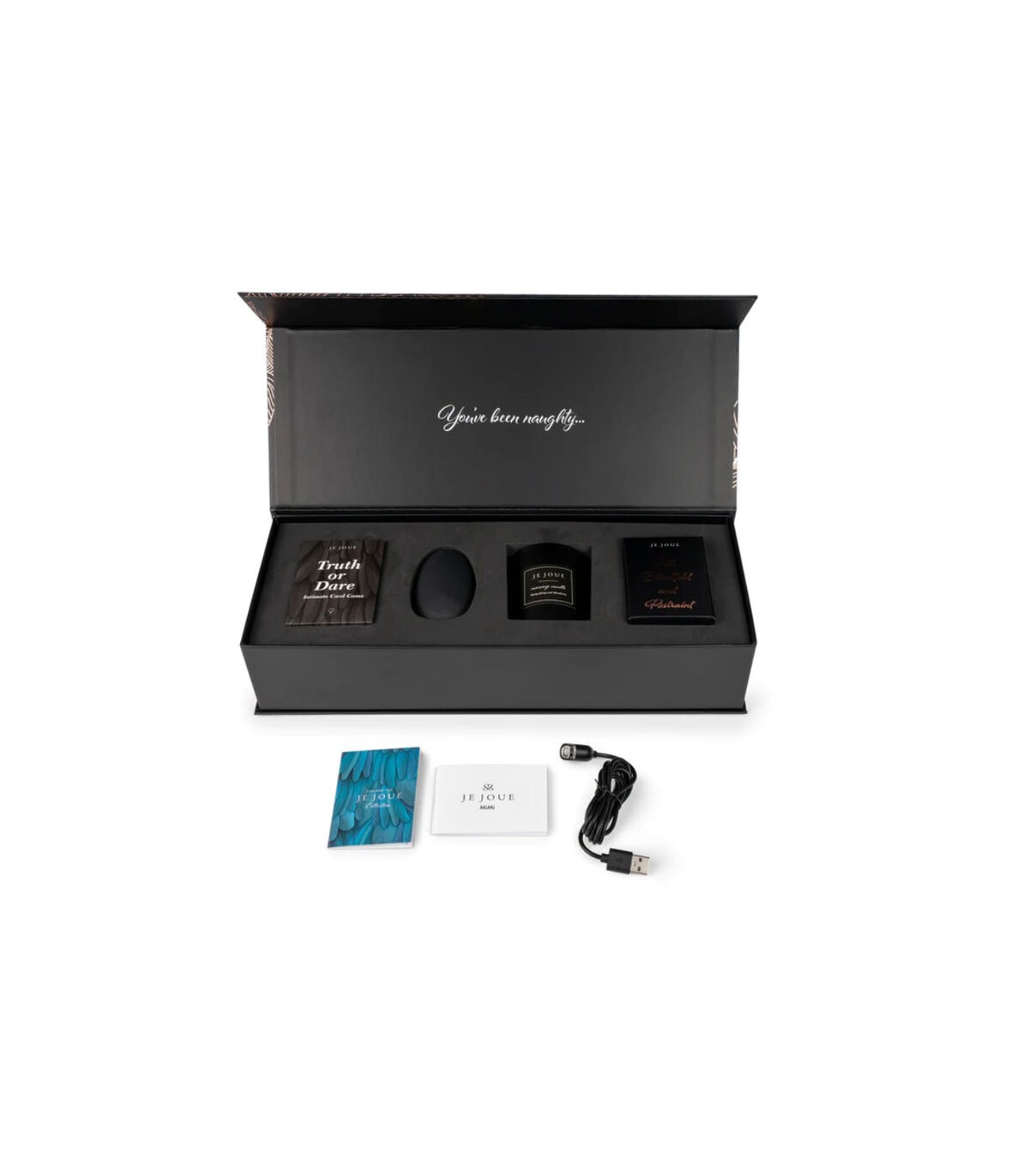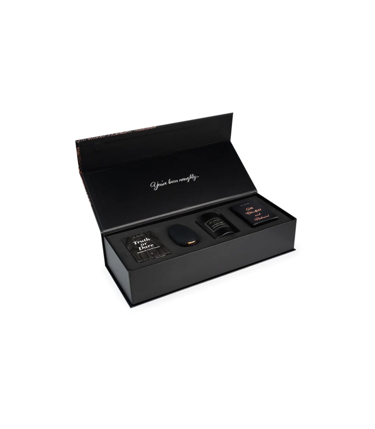Bellamente empaquetado en nuestro diseño de plumas de oro rosa Je Joue, este es el juego de regalo perfecto para esa persona traviesa especial en tu vida. Todo lo que necesitas para una noche íntima e inolvidable explorando la mente, el cuerpo y el alma de tu pareja. ¡Terminarás la noche sintiéndote mimado, amado y más cerca que nunca!
