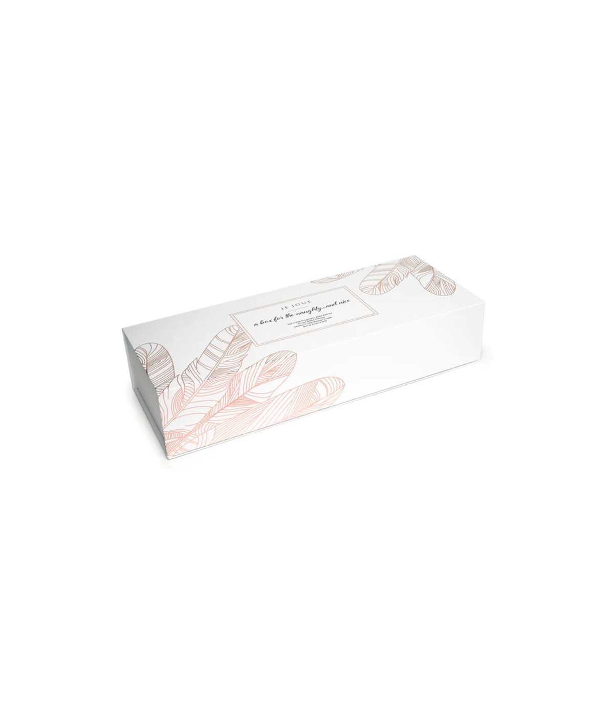 Bellamente empaquetada con el diseño de plumas de oro rosa de Je Joue, esta caja es más que un simple regalo, es un gesto de amor y una promesa de pasar más tiempo de calidad con la persona que amas. Mima a esa persona especial en tu vida con esta caja de regalo de bienestar sexual de edición limitada de Je Joue.