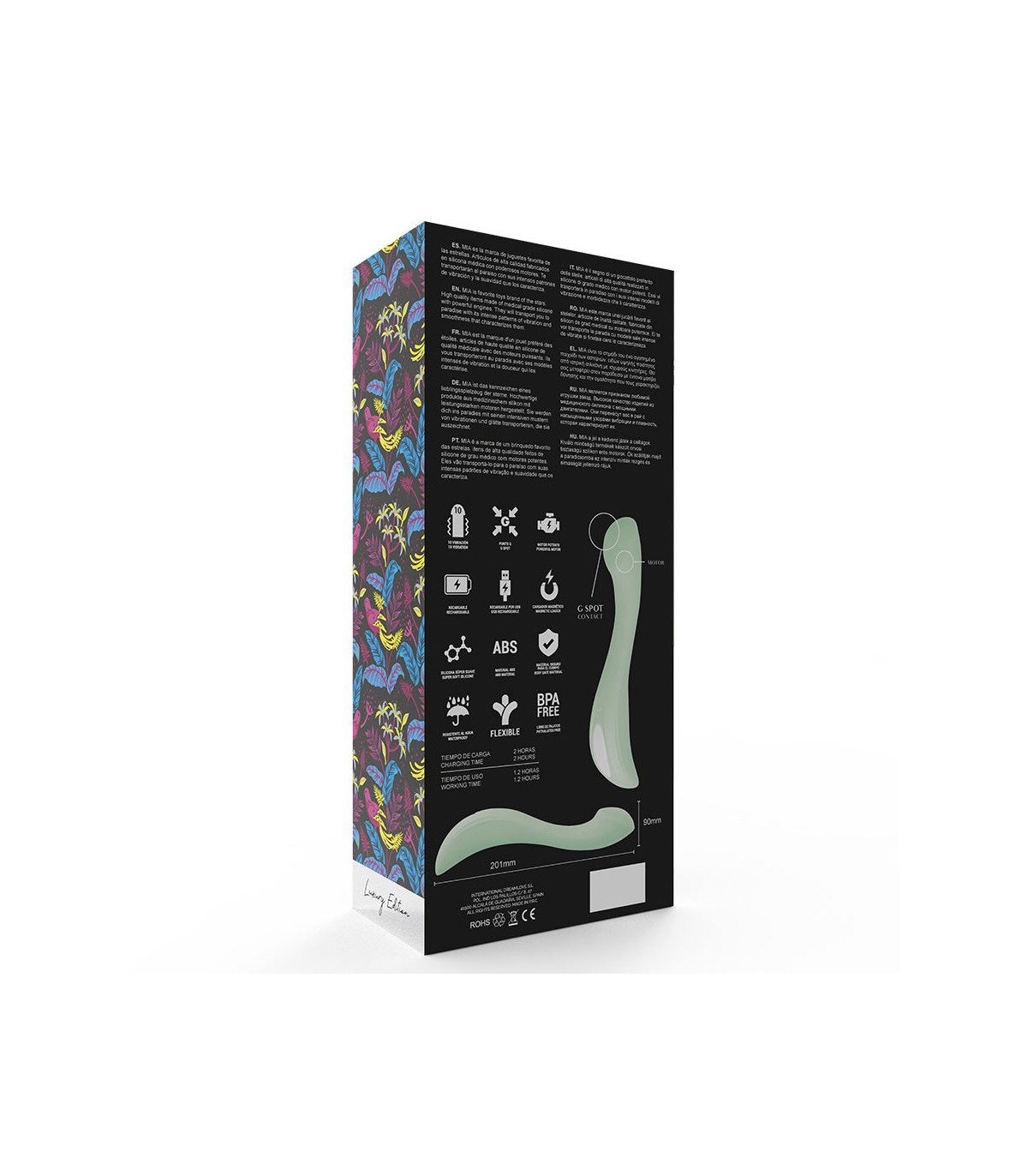 Los 10 potentes programas de vibración se distribuyen de manera ideal por todo el tallo, por lo que las vibraciones estimulan intensamente tanto el extremo superior como la parte inferior. Durante la excitante penetración, te masajean también sus 3 nervios curvos en la parte inferior del tallo.