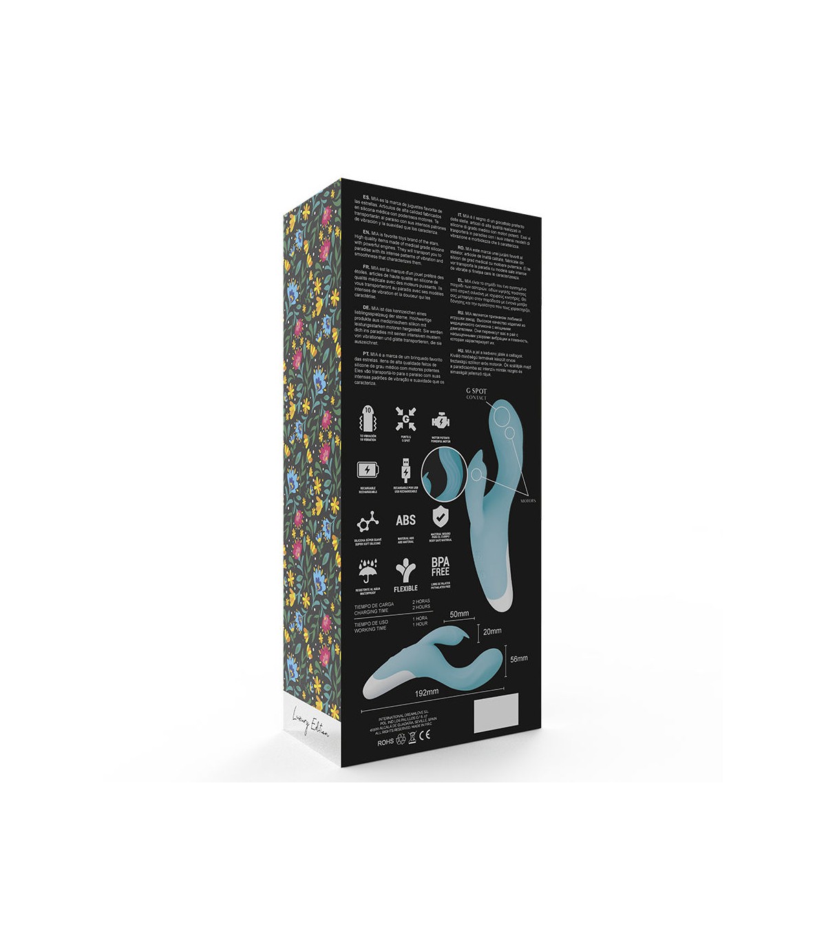 ppDresde es vibracion extraintensa estimula al mismo tiempo tu punto G y tu clitoris ppEste compacto juguete erotico de silicona flexible es una sorpresa muy dulce que nos proporciona la marca MIA Dresde tiene una excelente habilidad para proporcionarte orgasmos inimaginables estimulando al mismo tiempo el punto G y el clitoris Puede parecer pequeno e inocente pero detras de sus orejas se oculta toda la potencia de este conejo que con 2 potentisimos motores y 10 programas de vibracion te hara sentir toda su magia Y que gran fortuna el tamano compacto de Dresde que le convierte en el companero de viaje ideal Asi no lo sacaras de la chistera pero si que podras sacarlo del bolso cada vez que te asalte la lujuria ppEn el practico anillo de sujecion con panel de mando encontraras de manera intuitiva las vibraciones que mas te gustan simplemente pulsando un boton mientras sujetas con firmeza este simpatico conejito incluso en los momentos mas humedos e intensos Los 10 programas de vibracion especialmente potentes te dejaran sin habla Los 2 motores distribuyen las vibraciones por todo el tallo y el estimulador del clitoris por lo que proporciona una intensa estimulacion por todo tu cuerpo El acabado impermeable IPX7 del MIA DRESDE te invita tambien a disfrutar de momentos de placer en la ducha o la banera pulliSilicona medica anti alergenica liliPotente Motor doble liliCuerpo Flexible liliSilencioso lili10 programas de Vibracion liliResistente al agua liliRecargable liliMedidas Longitud 192cm x 56pLas baterias de tu nuevo juguete favorito permiten recargarlo y respetar el medio ambiente ppLa silicona anti alergenica posee un tacto muy agradable y es el material ideal para pasarselo en grande Es muy higienico y favorece el deslizamiento sobre todo con la ayuda de lubricantes con base de agua de la marca waterfeel que convierten la experiencia en un placer unico Tu juguete se puede limpiar facilmente con agua y un jabon suave Si deseas una higiene mas exhaustiva puedes utilizar un producto limpiador de dildos waterfeel basta con rociarlo un par de veces para que tu juguete quede perfectamente limpio pp