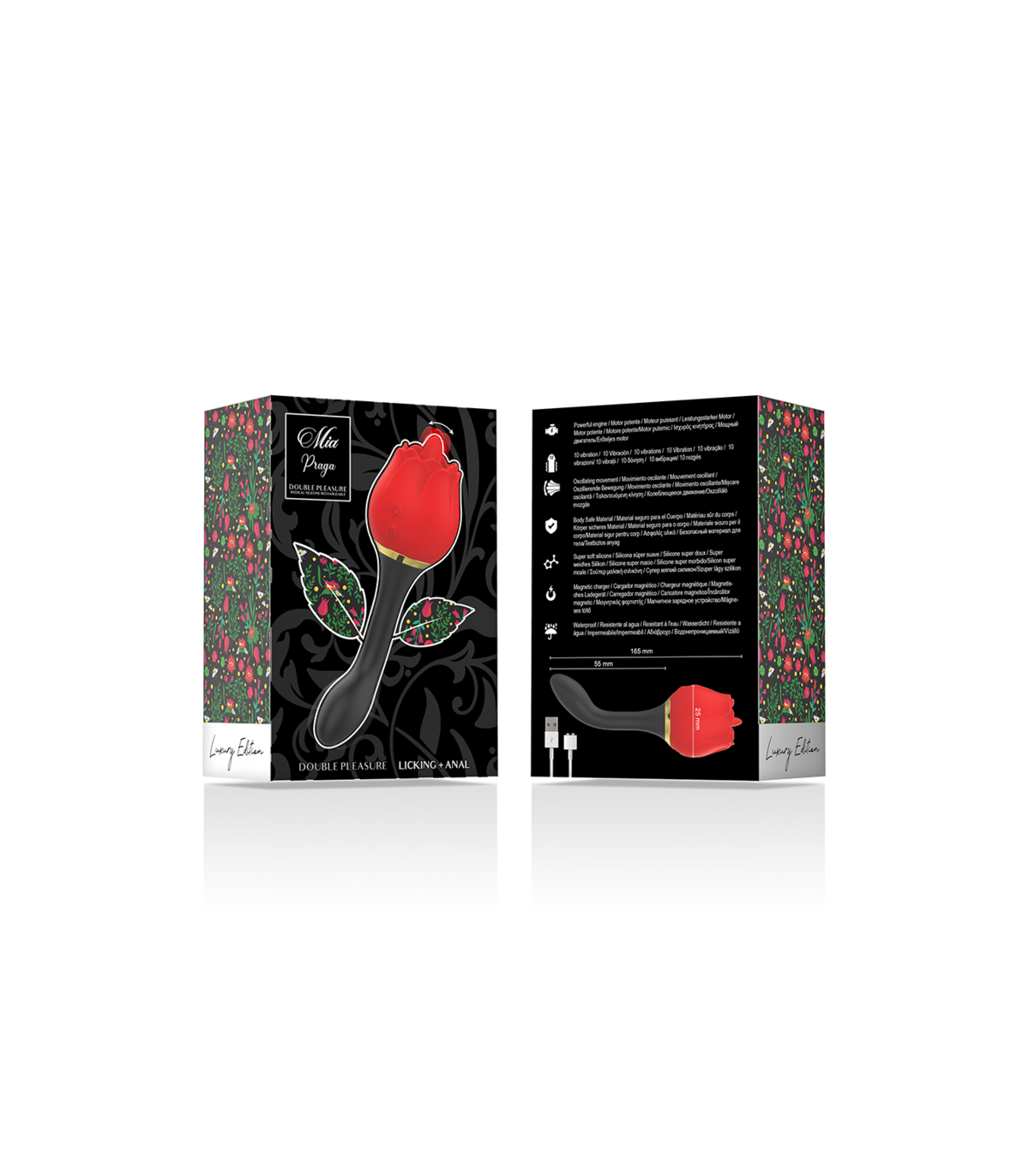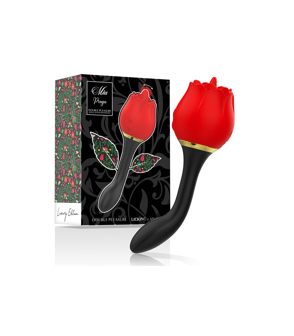 Formas de jugar; Coloque la rosa de silicona de forma segura en la palma de su mano. Coloque MIA PRAGA? en su clítoris u otras zonas erógenas y disfrute de las vibraciones profundas. Explore diferentes entornos y posiciones para adaptar su experiencia. Es perfecto para estimular el clítoris y además utilizar el mango vibrador para la zona anal. Doble y potente estimulación.
