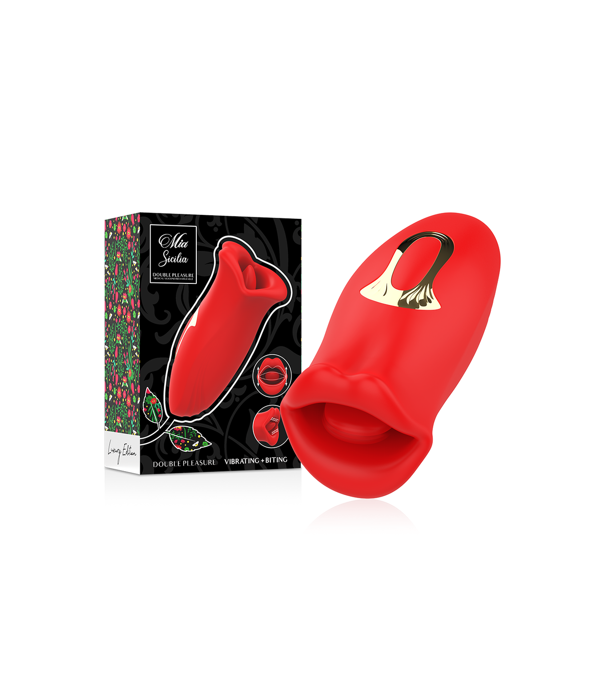 MIA SICILIA™ es un innovador vibrador de clítoris de uso externo que proporciona nuevas sensaciones al clítoris y a otras zonas erógenas para poder disfrutar de múltiples orgasmos, a diferencia de los vibradores convencionales que suelen insensibilizar la zona alrededor del clítoris. Gracias al movimiento de simulación real TONGUE, realiza un movimiento elíptico constante, mientras que la punta suave y flexible estimula con una precisión absoluta. Tiene una forma muy original y contiene diez modos de placer con intensidades variables. MIA SICILIA™ es perfecto para las personas o parejas que desean experimentar un tipo de orgasmo distinto.