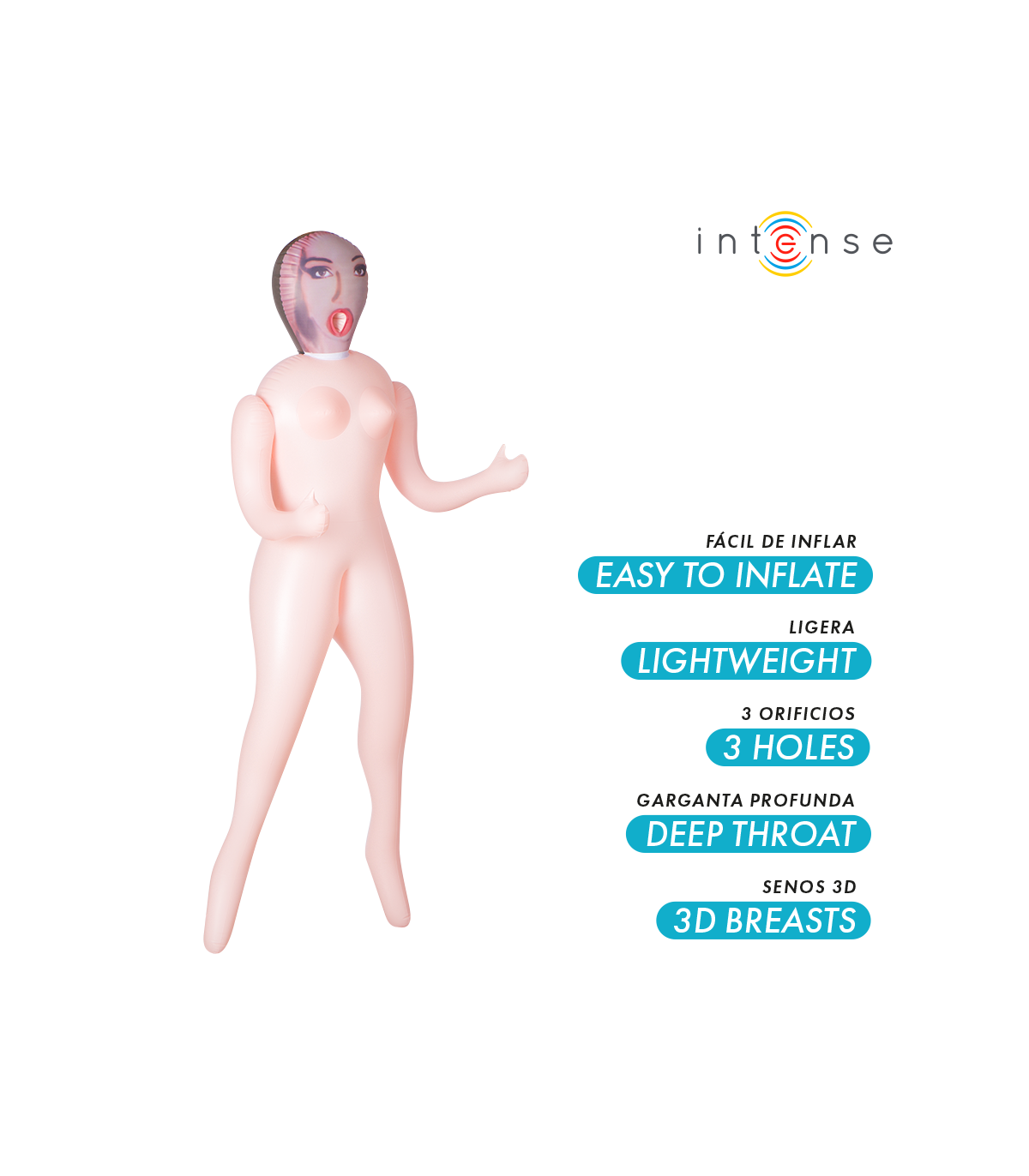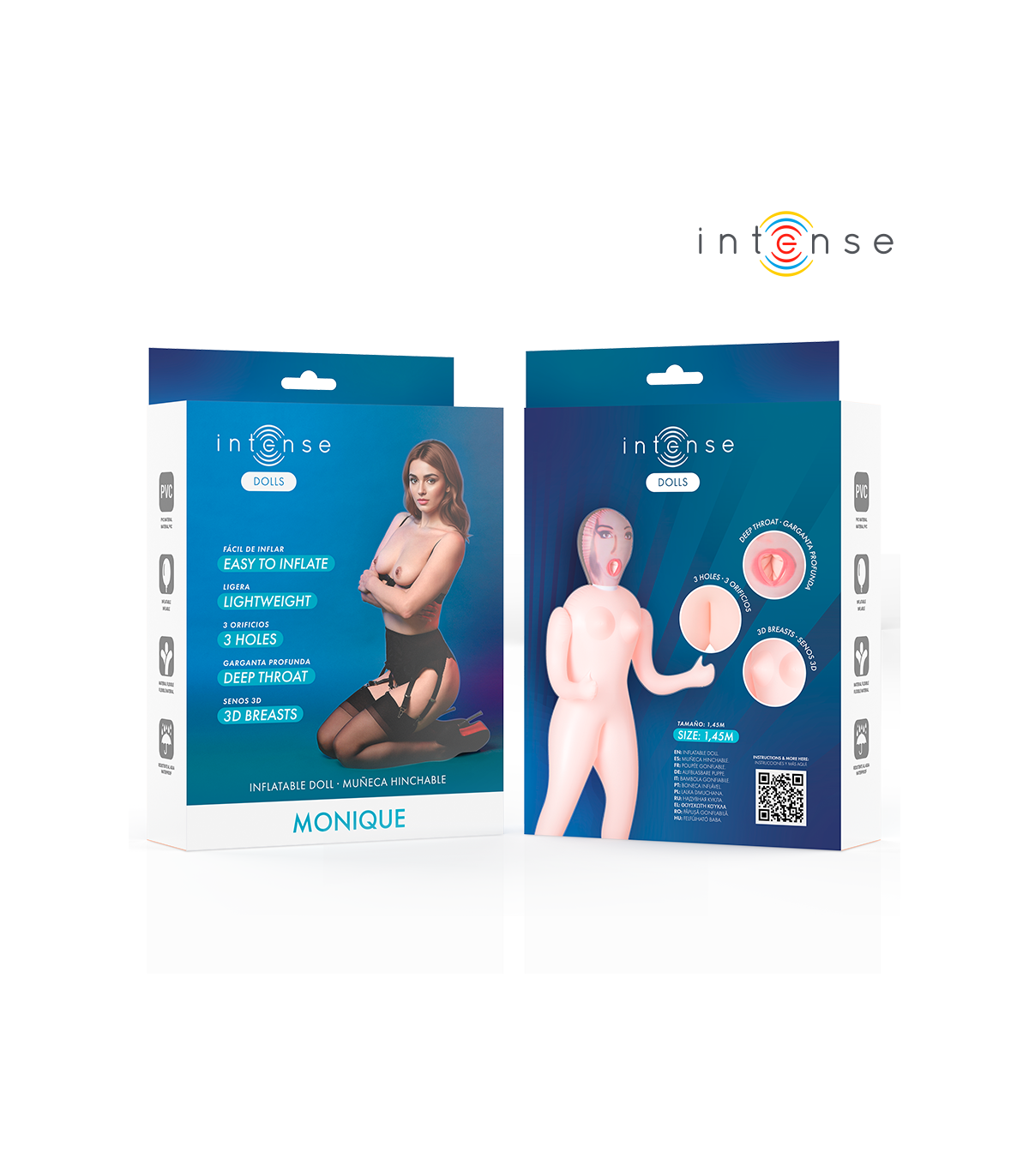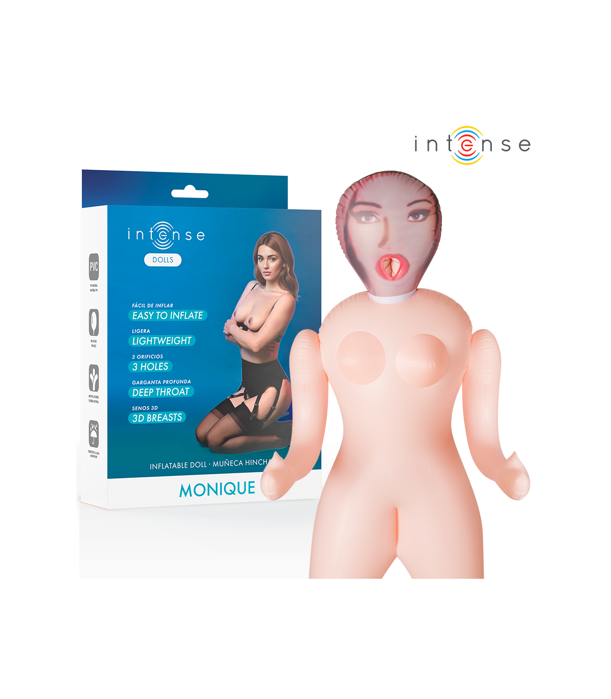 Descubre el placer sin límites con Monique, la muñeca hinchable de Intense Dolls que combina realismo, comodidad y diversión en un diseño ligero y fácil de usar. Con sus tres orificios funcionales y sus senos 3D realistas, ofrece una experiencia sensual completa para disfrutar en solitario o en pareja.