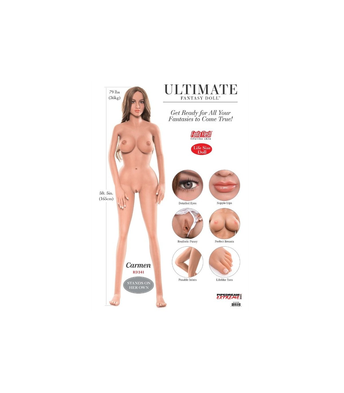 Se mueve desde la cabeza hasta los dedos de los pies. Las últimas muñecas de Pipedream han sido cuidadosamente creadas para cumplir todas las fantasías e inspirar placeres íntimos al máximo nivel. Prestando atención al más mínimo detalle y con piel hecha de Fanta Flesh, las muñecas de Ultimate Fantasy harán que todos tus sueños se hagan realidad.