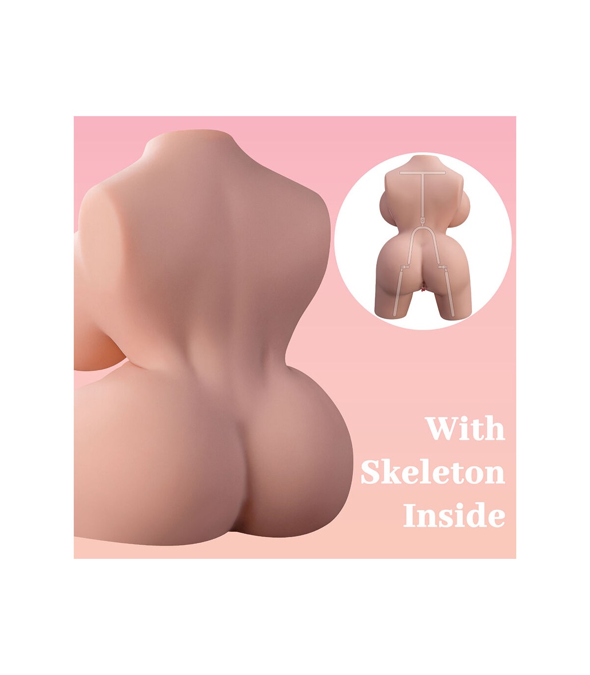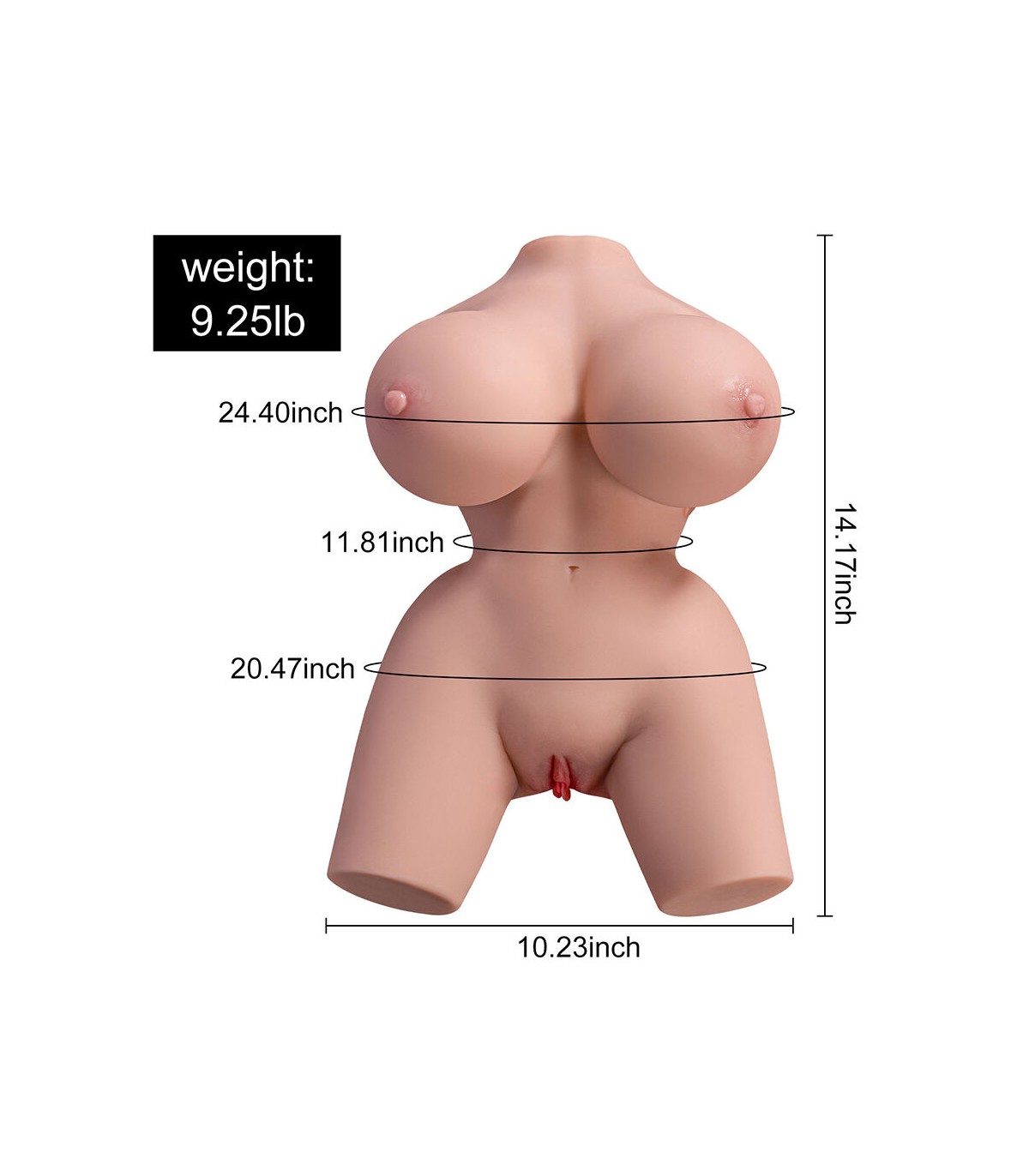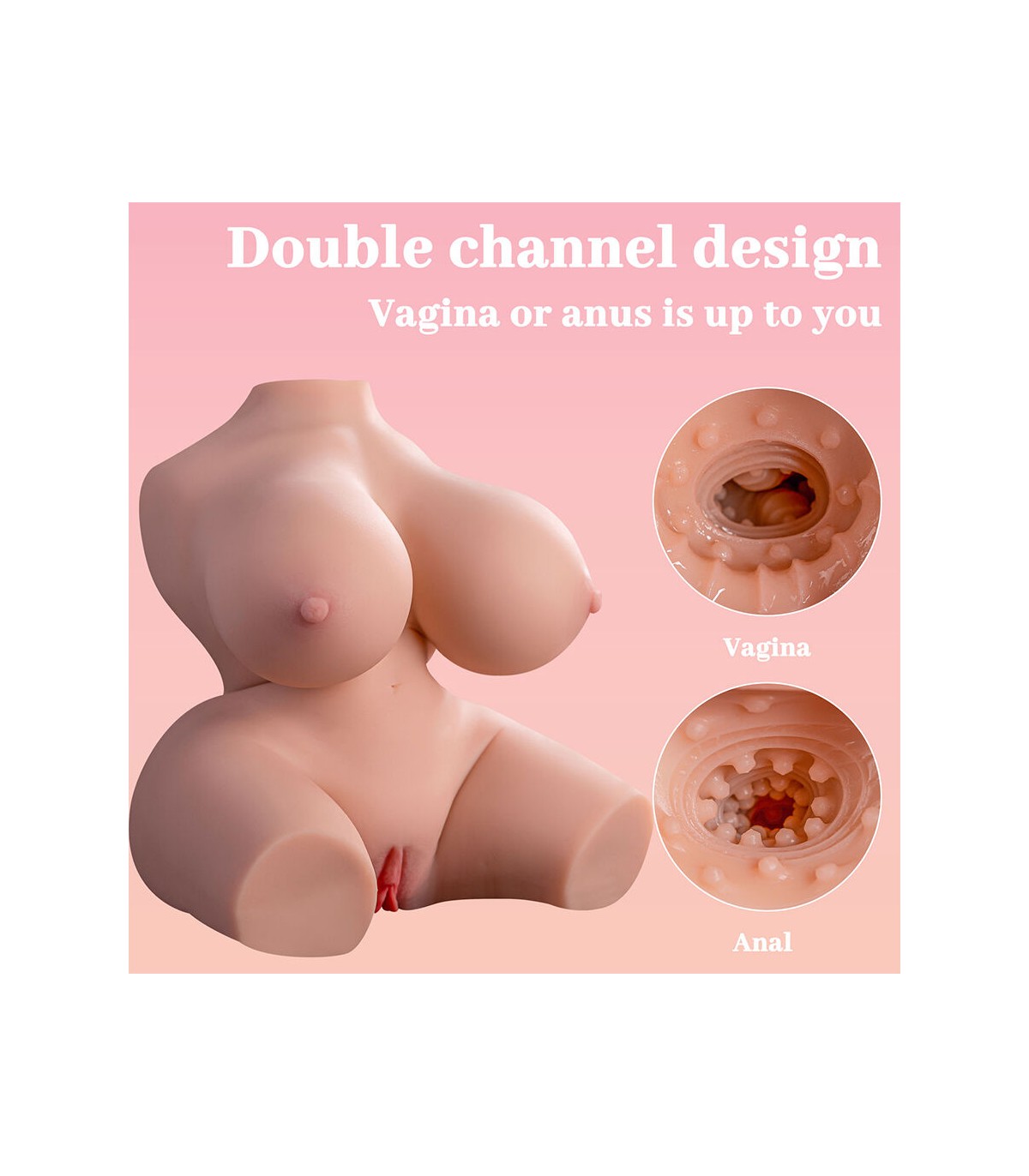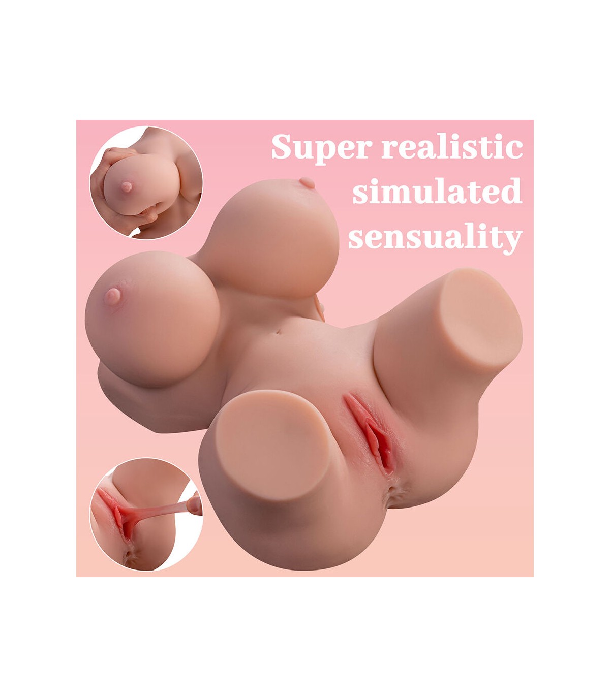 • Diseño hiperrealista con detalles anatómicos: Este torso ha sido diseñado para replicar fielmente el aspecto y la sensación del cuerpo femenino. Su estructura incluye: Senos moldeables y suaves, que brindan una experiencia táctil placentera. Cintura definida y curvas naturales, proporcionando una apariencia realista. Labios vaginales detallados y una entrada anal realista, con texturas internas diseñadas para una estimulación auténtica.