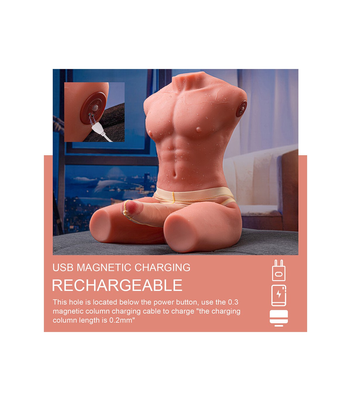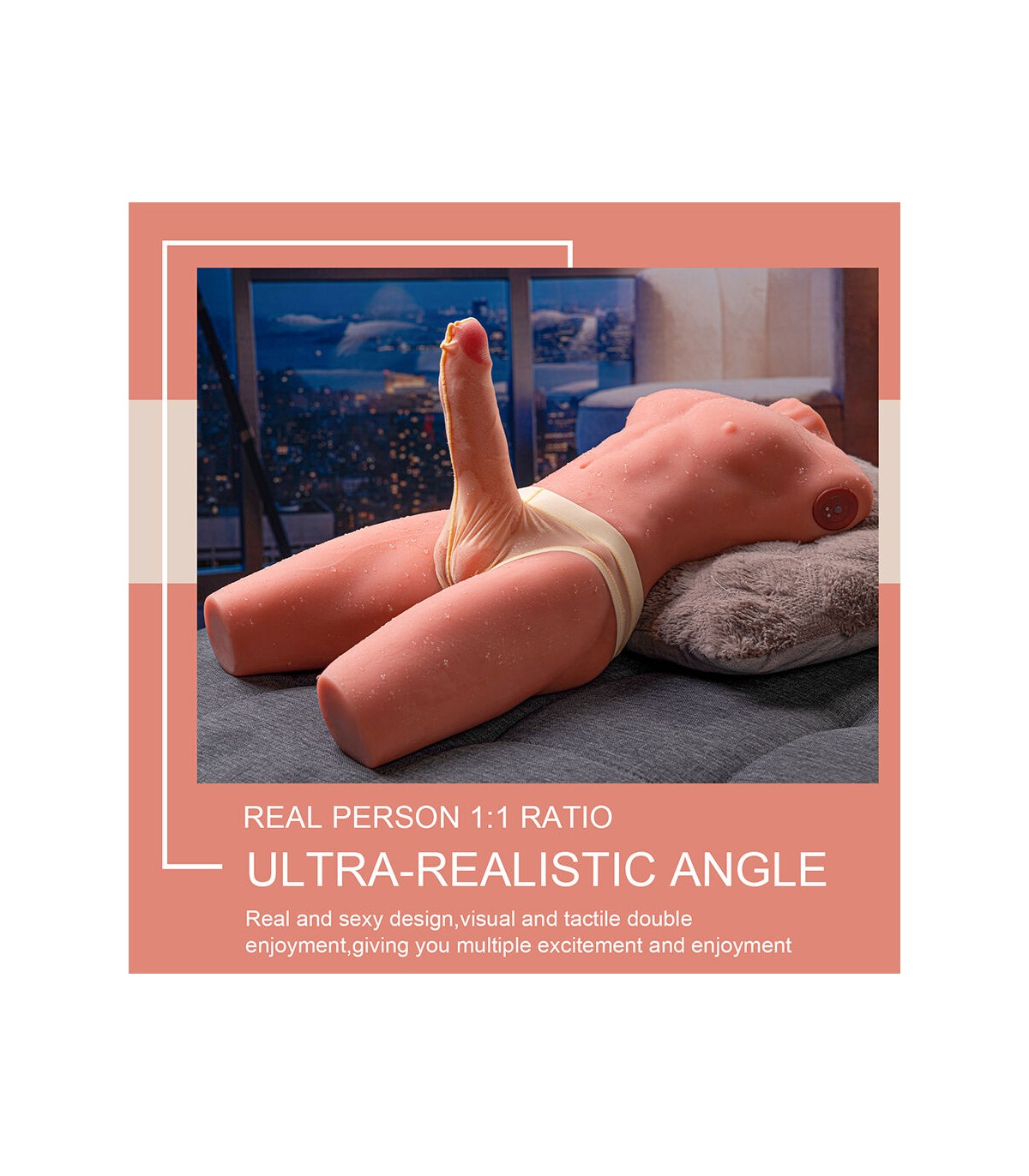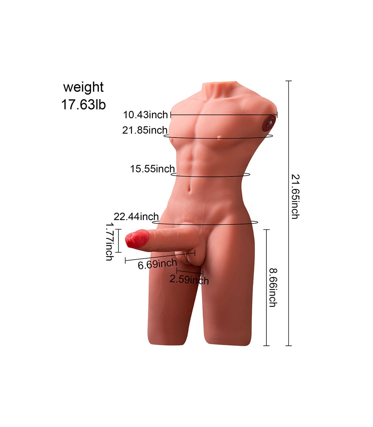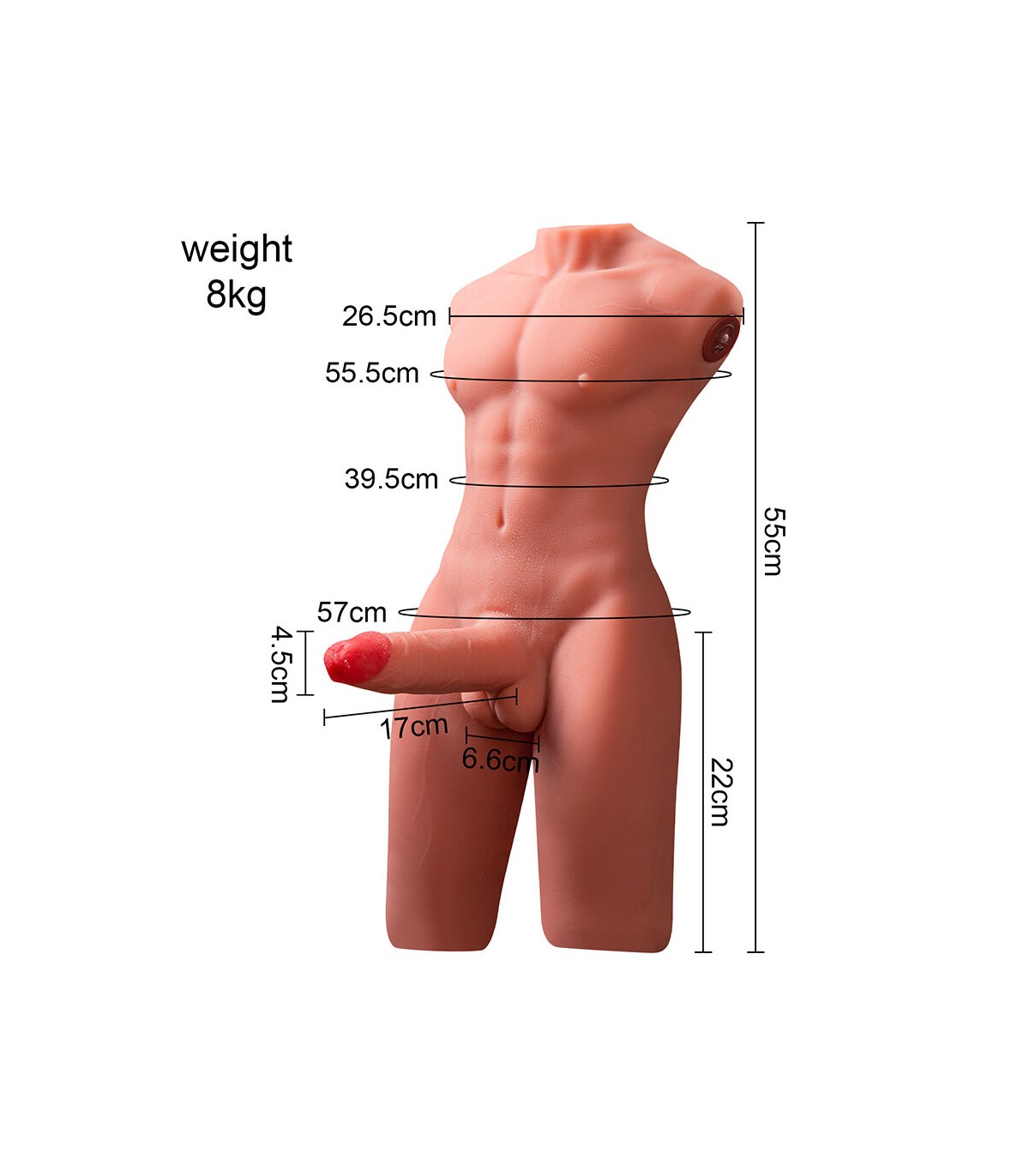 - Diseño realista con detalles anatómicos: Este torso ha sido cuidadosamente diseñado para ofrecer una apariencia y sensación lo más natural posible. Sus características incluyen: Pectorales definidos y abdomen marcado, proporcionando una estructura atractiva y realista. Cintura delgada y curvas musculares naturales, con una forma ergonómica para mayor comodidad. Dildo realístico integrado, con detalles como venas y glande pronunciado para una experiencia auténtica.