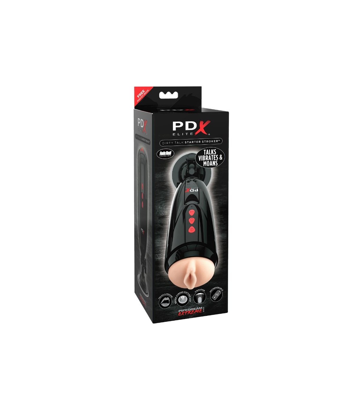 ¿Preparado para vivir la mejor experiencia de masturbación en tu vida? Perfecto para principiantes, el Dirty Starter Stroker de PDX Elite ofrece una experiencia sensorial y de placer total. Combina sus potentes vibraciones con gemidos y frases que te llevarán a alcanzar unos niveles de satisfacción y placer nunca antes tenidos.