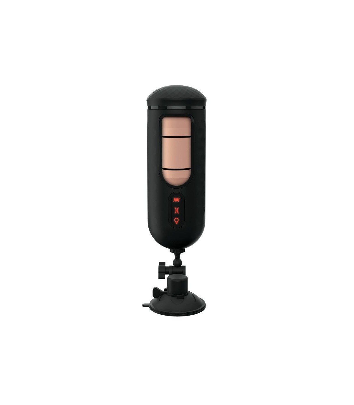 Explore your options! The sturdy exterior case with an adjustable locking suction cup can be set to your preferred hands-free position, or remove the interior Fanta Flesh sleeve for handheld pleasure.