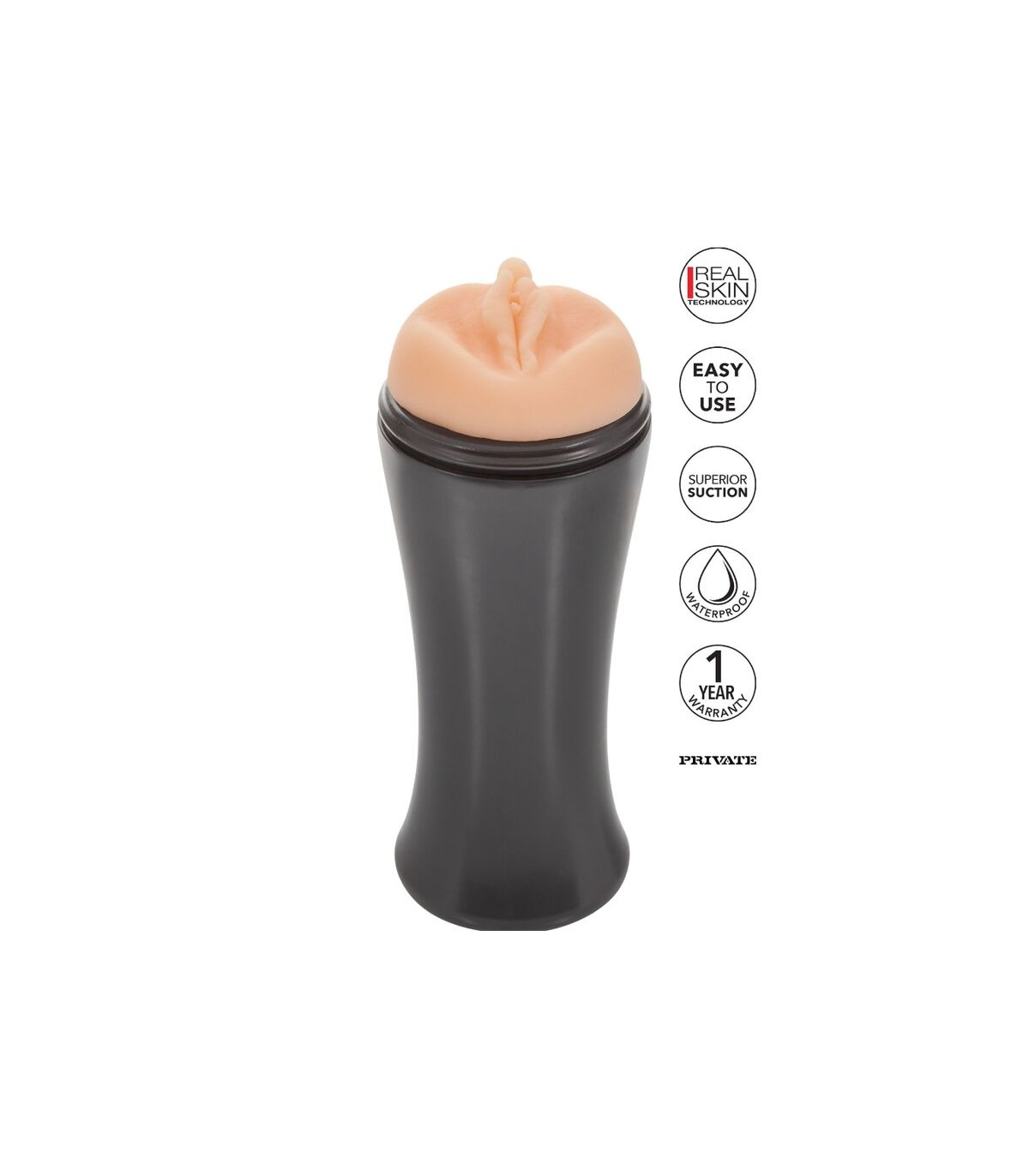 The Hot Bombshell To Go de PRIVATE es un masturbador compacto, a prueba de viajes, ¡listo para darte placer, donde y cuando quieras! Este diseño compacto y discreto está diseñado para brindar la máxima satisfacción de caricias y succión. Con una textura suave y realista y un agarre cómodo, es una opción sensual para la satisfacción íntima.