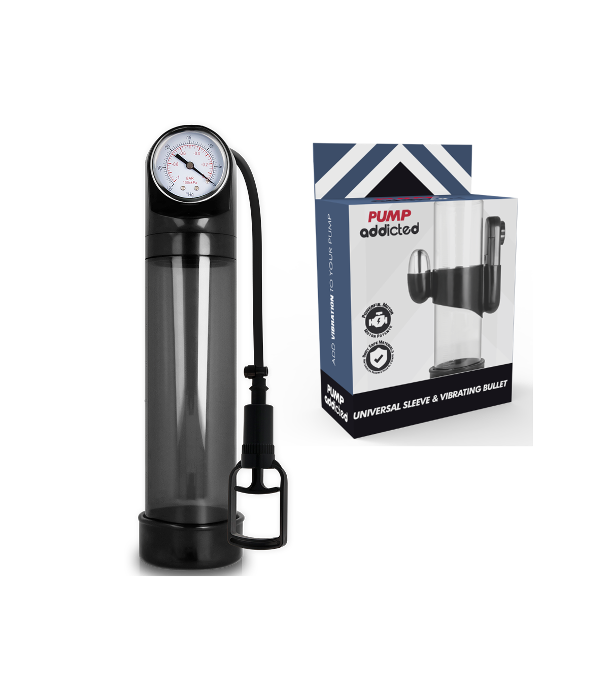 Pump Addicted ayuda a alcanzar la erección de una forma más sencilla utilizando un sistema de vacío que hace que la sangre se concentre en el pene cuando todavía está flácido. La erección se alcanza y mantiene mediante un sellado cómodo y hermético en la base del cuerpo, justo en la unión del pene con el pubis, gracias al cual se mantiene la sangre en el tronco. Gracias a la manga, el sellado es firme, cómodo y estrecho sin apretar.