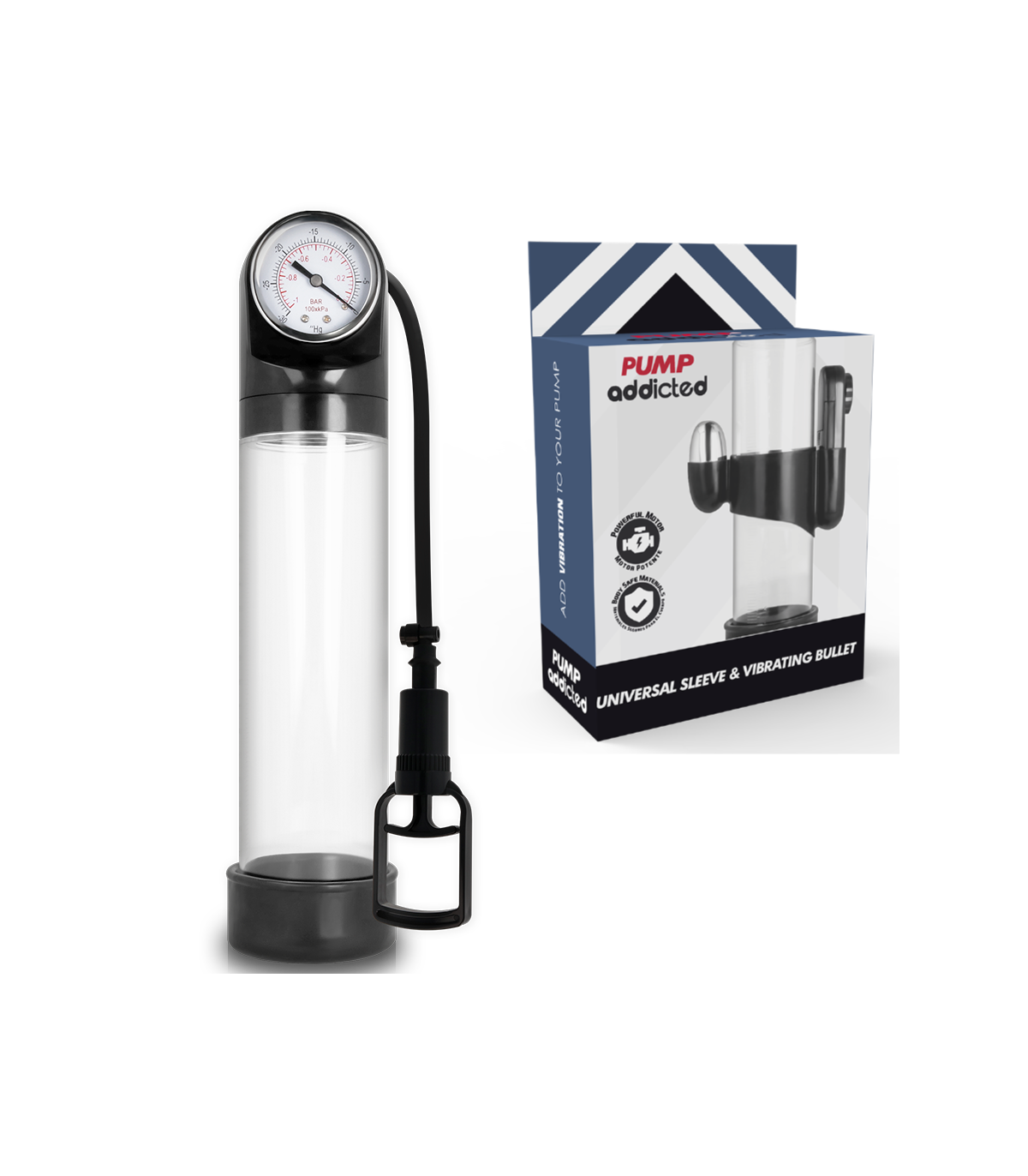 Pump Addicted ayuda a alcanzar la erección de una forma más sencilla utilizando un sistema de vacío que hace que la sangre se concentre en el pene cuando todavía está flácido. La erección se alcanza y mantiene mediante un sellado cómodo y hermético en la base del cuerpo, justo en la unión del pene con el pubis, gracias al cual se mantiene la sangre en el tronco. Gracias a la manga, el sellado es firme, cómodo y estrecho sin apretar.