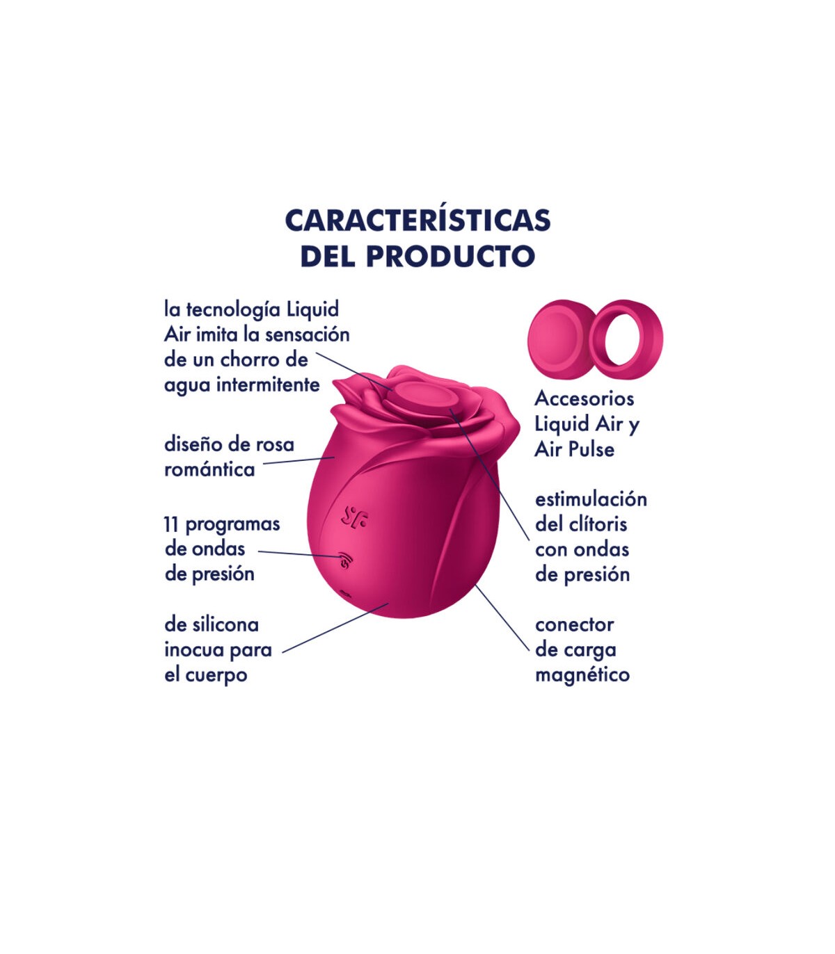 Con la tecnología Satisfyer Air Pulse, que ha ayudado a millones de personas de todo el mundo a alcanzar clímax incomparables, este extraordinario producto de placer estimulará tu clítoris completamente sin contacto. Y eso no es todo: El cabezal Liquid Air incluido se encarga del clítoris con la innovadora tecnología Liquid Air de Satisfyer que crea una sensación similar a la de un chorro de agua pulsante.