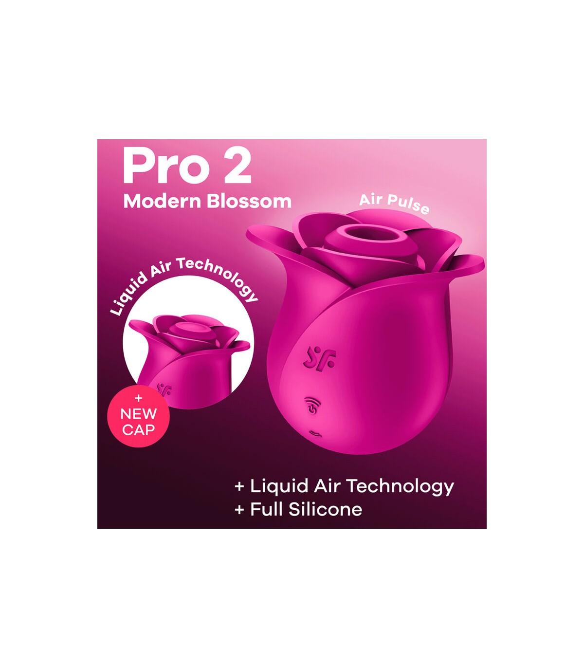 Su diseño elegante e innovador se inspira en la belleza de una rosa en plena floración convirtiendo este dispositivo de placer en una auténtica obra de arte. Satisfyer Pro 2 Modern Blossom cuenta con la apreciada tecnología Satisfyer Air Pulse, así como con la nueva y extraordinaria tecnología Satisfyer Liquid Air. Elige el cabezal Air Pulse para dar placer al clítoris sin contacto o el cabezal Liquid Air con su membrana fina como un pétalo, que imita la sensual oleada de agua pulsante.